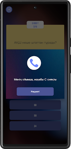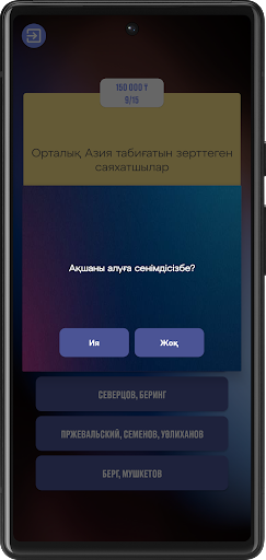 Бұл ойын қазақ тіліндегі интелектуалды ойын. Бұл қазақша ойында Сізге көптеген қызықты сұрақтар деңгей бойынша келетін болады. Сұрақтар кино, тұрмыстық, музыка, география, тарих және адам ой-өрісінің негізін құрайтын сұрақтардан тұрады.