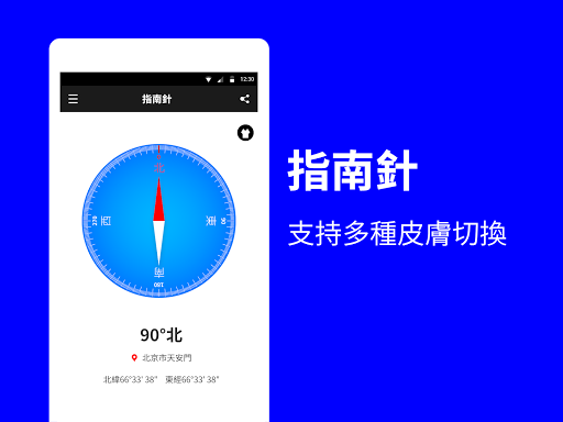 一款簡潔直觀漂亮的多功能指南針! 功能列表: 1、提供指南針、GPS定位、經緯度、地理位置等信息。 2、多款主題隨時切換,自由選擇指南針皮膚。 3、支持地理位置分享功能,把自己的信息發送給朋友,讓朋友知道自己的位置。 4、體積小巧,權限也非常少。 5、定位速度快,定位準確誤差小。 6、界面簡潔清爽。 7、支持指南針校准說明。 8、支持水平儀功能,手機也可以當水平儀。 9、支持我的定位功能,顯示當前地理位置,經緯度及地圖信息。 10、支持地圖功能,顯示周邊交通信息,實時路況信息,衛星地圖顯示。 為了顯示經緯度和地理位置信息,當您看到需要獲取您的位置信息對話框時,請選擇"允許"。 溫馨提示:為了讓指南針能夠準確校準正北方向,建議您站在空曠的地方,手機屏幕朝向天空,在您的身前,拿著手機畫8字的形狀。 畫2次,再把屏幕面對您自己,畫8字,2次,這樣就可以校正指南針了。 有了指南針,再也不愁分不清東南西北啦,真是外出旅行必備良品!