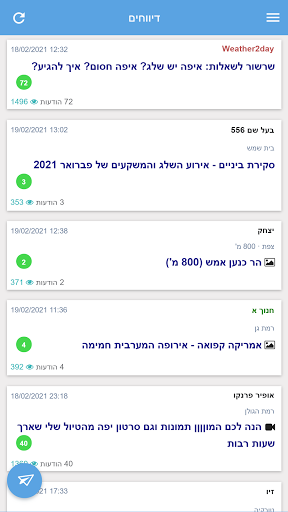 אפליקצית מכם גשם ומזג האוויר, מציגה את התחזית המדוייקת ביותר עבור האיזור שלך. תחזית שעתית מכם גשם על מפת גוגל (עדכון כל 2-5 דקות) תמונת לווין - SAT24 מפות חום - מדידות טמפרטורה, לחות, משקעים ועוד על גבי מפה צבעונית אזהרות מטאורולוגיות והודעות מיוחדות בפוש שידור חי ממצלמות מזג אוויר ברחבי הארץ (כולל מצלמות החרמון) יותר מ-300 תחנות מזג אוויר של משרד החקלאות והשירות המטאורולוגי מחוברות לאפליקציה טמפרטורות בזמן אמת תחזית שבועית במלל תחזית גשם מצב הים - תחזית לחופי ישראל והכנרת דיווחי מזג אוויר בזמן אמת ע\י גולשים דיווחי מדוזות בחופי הים אפליקצית מזג אוויר היום - Weather2day מותאמת במיוחד לישראל ומציגה מכם גשם, תחזית ויזואלית עד 10 ימים קדימה, מציגה אזהרות ושולחת התראות על מזג אוויר בהודעת פוש. ניתן לשלוח דיווחי מזג אוויר ולשתף תמונות וסרטונים שיתפרסמו לעיניי אלפי צופים באמצעות מערכת דיווחים ייחודית והראשונה מסוגה בישראל. האפליקציה מתבססת על יותר מ-300 תחנות מזג אוויר מקצועיות הפרוסות בשטח, כשאנו מגישים לכם את הטמפרטורה, נתוני הרוח, הלחות והגשם הם אינם תוצר של מודלים אלא מדידה אמיתית מתחנה אמיתית, חלק מתחנות מזג האוויר בלעדיות לאפליקציה. רוצים לדעת אם ירד שלג? מתי הסערה מתקרבת או מה ללבוש מחר? כאן עוקבים מקרוב אחר התחזית ומודלים לחיזוי מזג האוויר ומעדכנים לפני החזאים בערוצי הטלוויזיה כמו מתן יעקב, דני רופ, טל שמאי ואילנית אדלר.
