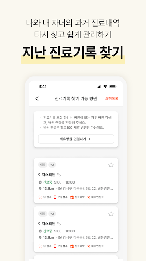 헬로100 _내 손안에 병원 필수 앱! ◎ 비대면 진료: 병원 방문이 어려울 땐 언제 어디서나 앱으로 간편하게 비대면 진료받을 수 있어요. ◎ 오늘접수: 집에서 접수하고 순서에 맞춰 병원 방문하여 원내대기시간을 최소화할 수 있어요. ◎ QR접수: 병원 고유 QR코드 스캔으로 데스크를 거칠 필요 없이 앱으로 간편하게 진료접수 할 수 있어요. ◎ 진료예약: 병원진료를 원하는 날짜와 시간을 선택하여 진료예약이 가능해요. ◎ 진료수첩: 검사결과와 처방전, 진료비 영수증을 기록하고 편하게 관리해 보세요. 국가검진 문진표를 사전 작성하고, 앱에서 병원으로 전송할 수 있어요 ◎ 실손보험청구: 번거로운 서류를 첨부하지 않고 앱에서 즉시 실손보험청구가 가능해요. ◎ 병원찾기: 내 근처 또는 내 증상에 맞는 병원을 쉽게 검색할 수 있어요. *비대면진료는 보건의료기본법 제44조에 근거한 보건복지부 시범사업에 맞춰 운영되고 있습니다. [헬로100 서비스 이용 및 제휴 문의] - E-mail : hello100@eghishc.co.kr ※ 앱 접근 권한 안내 헬로100 APP은 서비스 제공을 위해 아래의 접근 권한을 필요로 합니다. ◎ 선택적 접근권한 (선택적 접근권한에 동의하지 않아도 서비스 이용이 가능합니다) - 알림: 진료접수 안내, 순번 안내 등 서비스 이용 안내 알림을 제공하기 위해 필요합니다. - 위치정보: 맞춤형 의료/병원정보 제공과 주변 병원과 약국을 찾기 위해서 위치정보가 필요합니다. - 카메라: QR코드를 스캔하여 진료접수, 비대면 화상통화 진료를 위해 필요한 권한입니다. - 사진: 프로필 작성, 비대면진료 접수 시 업로드할 사진 첨부를 위해 필요한 권한입니다. - 전화: 병원/약국/고객센터 전화 걸기 기능 사용을 위해 필요한 권한입니다. - 저장 : 서비스 이용을 위한 필요한 사진 및 파일 저장을 위해 필요한 권한입니다. ※ 휴대폰의 설정 > 앱 정보 > 헬로100 > 앱 권한 에서 설정 변경이 가능합니다. [고객센터] - 주소 : 서울 강서구 마곡중앙5로 22, 8층 이지스헬스케어 - 전화번호 : 1566-9474 - E-mail : hello100@eghishc.co.kr