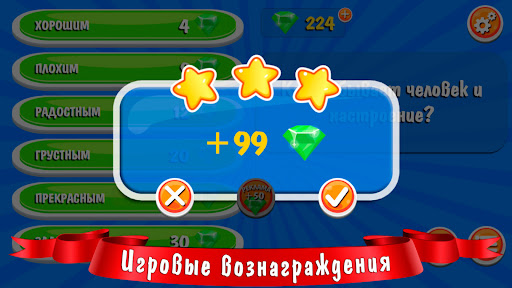 Что интересного в игре: - • Новый вариант игры для взрослых 100 к 1; - • Яркий и красочный дизайн игры; - • Словесные интересные игры без интернета для всей семьи; - • Отвечайте на интересные опросы в игра категорий с непредсказуемыми ответами; - • Получайте вознаграждение в монетах за каждое отгаданное слово; - • Открывайте правильный ответ за монеты, или посмотрев рекламу. Игра для компании 100 к 1 – это интересная игра викторина онлайн с многомиллионной аудиторией поклонников, квиз для компании один к одному совпадает со всеми известной игрой на логику сто к одному. Если Вы еще не играли в эти интересные игры головоломки, то обязательно попробуйте. Семейные прикольные игры вопрос ответ Вам очень понравится! Quiz игра в слова на ассоциации сто к одному не оставит Вас равнодушными. Интелектуальные игры соревнования выбери ответы, в которых нужно указывать правильные ответы на вполне житейские ситуации и отношения. Это самые популярные игры онлайн для всей семьи! Правила игры 100 к одному очень просты. На каждом уровне будет задаваться вопрос, а Вашей задачей будет угадать 6 самых популярных среди опрошенных людей ответов на этот опрос. В начале каждого уровня вам будет показан вопрос и шесть закрытых полей. На первый взгляд задача отгадать все слова кажется очень простой, но на самом деле Вы очень удивитесь, когда поймете, что Ваше мнение не всегда будет совпадать с мнением опрошенных людей, а ответы на вопросы не так легко найти. Чтобы перейти к новому вопросу в логические игры в дорогу без интернета, нужно угадать все 6 вариантов ответа на предыдущий вопрос. Играя в эти разные игры можно использовать подсказки и проверить какая у Вас эрудиция и интеллект. В игре сто к 1 присутствует возможность открыть правильный ответ за 50 игровых монет, или за просмотр рекламы, но не забывайте, что купив подсказку монеты не насчитываются. С начала игры дается 125 игровых монет. Отгадывая слова, Вы будете получать игровые монеты за каждое из них. Каждое слово имеет свою стоимость, соответственно Вы будете получать разное количество монет за отгаданные слова. За первое слово можно получить максимум 5 монет, а вот за шестое максимум 30 монет. При открытии правильного варианта ответа, на зеленой табличке можно увидеть количество монет, которые Вы заработали за это отгаданное слово. Отвечайте правильно на вопросы игры сто к одному (100 к 1) и зарабатывайте как можно больше монет. Ста вопросов будет достаточно, чтобы понять, как развита Ваша логика и смекалка. Эти интеллектуальные игры викторины можно брать с собой в дорогу. Это будет незабываемая борьба умов. Новые игры для компании – увлекательные приключения!