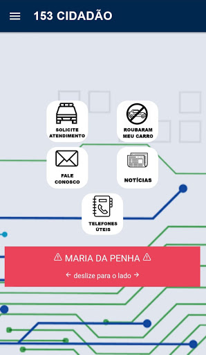 Crie denúncias reportadas diretamente a GUARDA MUNICIPAL; Tenha os principais telefones úteis e de emergência a um único clique; Interaja com a guarda municipal da sua cidade; Receba notícias em tempo real dos principais fatos, relacionados a GM, ocorridos em sua cidade; * Solicite ajuda com a funcionalidade PÂNICO * Solicite ajuda com a funcionalidade MARIA DA PENHA ao simples toque de um botão. Abaixo estão as Guardas Municipais que atualmente estão integradas ao 153 Cidadão: GM\s do Estado do Paraná: - GM SÃO JOSÉ DO PINHAIS (SJP) - GM PINHAIS - GM QUATRO BARRAS - GCM CAMPINA GRANDE DO SUL - GM CAMPO LARGO - GM PARANAGUÁ - GM PONTA GROSSA GM\s do Estado de Santa Catarina - GM CHAPECÓ GM\s do Estado de São Paulo - GM ARUJÁ - GM VINHEDO - GM BRAGANÇA PAULISTA - GM VALINHOS *Necessita de liberação por parte da Guarda Municipal;