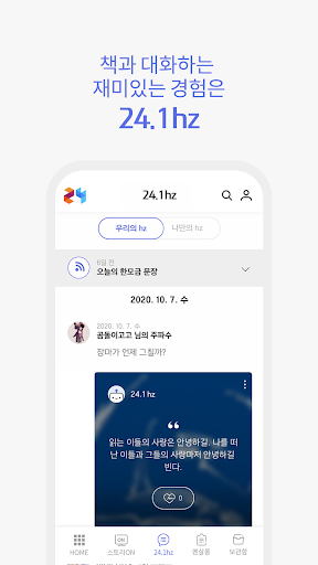 예스24의 모든 스토리를 한 곳에서 즐기다, 스토리24 1. 오직 스토리24에서만 만날 수 있는 다양한 문화 콘텐츠 “스토리24” - 최신 도서, 인기 웹소설/웹툰, 문화웹진, 영화까지 이제는 스토리24에서 만나보세요. 2. 강력 추천 인기작 바로 보는 “스토리ON” - 오늘 뭐 볼까? 작품 선택이 힘들다면 예스24가 엄선한 스토리를 바로 볼 수 있어요. 3. 책과 대화하는 재미있는 경험은 “24.1hz” - AI가 추천해 주는 책 속의 한 문장으로 취향에 맞는 작품을 찾아 보세요. 4. 다양한 이야기를 나누고 싶다면 “펜살롱” - 정보 공유와 소통을 즐길 수 있는 커뮤니티에 자유롭게 참여해 보세요. 5. 내가 본 작품들을 모두 모은 “보관함” - 보고 구매한 작품들을 쉽게 찾고, 깜짝 선물도 받을 수 있어요. [앱 접근권한 안내] 정보통신망법 제22조의2(접근권한에 대한 동의)에 따라 앱 서비스 이용 시 필요한 접근권한을 아래와 같이 안내드립니다. ● 필수 접근권한 - 없음 ● 선택 접근권한 - 알림 : 기기 식별, 푸시 알림 수신, 보이는 ARS 이용을 위해 필요합니다. - 기기 사진, 미디어, 파일 : 펜살롱/프로필 등 이미지 등록을 위해 필요합니다. 카메라 : 펜살롱/프로필 등 이미지 등록을 위해 필요합니다. · 선택적 접근 권한은 관련 기능 이용(접근) 시 동의하실 수 있으며, 미동의 시에도 해당 기능 외 앱 서비스는 이용 가능합니다. · 휴대폰 설정 > 애플리케이션 > 스토리24 > 앱 권한 에서 설정을 변경하실 수 있습니다. ---- 개발자 연락처 : YES24 CO., LTD 대한민국 서울특별시 영등포구 영등포구 은행로 11, 5층,6층 (여의도동) 07237 229-81-3700 2005-02682 본인 직접 신고