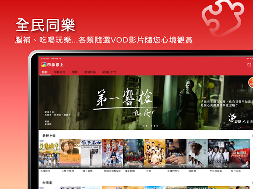 【全方位的LIVE頻道】 超過 100 個精彩熱門頻道,含括戲劇、電影、新聞財經、兒少卡通、動漫特攝、生活旅遊、時尚新知、運動休閒、音樂綜藝、現場直擊等各式節目應有盡有! 多螢跨屏 行動收視 NO.1 付費用戶可享最高HD高畫質播放。可於手機、電腦、平板等各種裝置觀賞,流暢追劇不卡卡 ☞【免費體驗】 註冊登入即享7天【豪華頻道餐免費體驗】首次註冊登入成為《四季線上4GTV》用戶,只要未使用過本活動或購買任何頻道套餐服務,即可享7天免費收看頻道節目(每位註冊用戶限享一次)。 ☞【最豐富的免費頻道】 超過40個熱門頻道,新聞、生活、旅遊、親子,各式節目應有盡有,下載即收看,完全免費。 【使用說明】 1. 因版權授權限制,部份直播節目與原頻道商在其它平台呈現可能不同。 2. 頻道商在各載具有不同授權,部分頻道無法在特定載具播出。 3. 本公司擁有更換頻道之權利。 【聯絡資訊】 親愛的客戶,若您有收視問題,歡迎您與我們聯繫,我們將會盡力協助 : ️客服專線:(02)8601-8068 客服信箱:support@4gtv.tv 服務時間:週一至週五 10:00~19:00 (國定假日除外) 若非上班時間,麻煩您於語音系統留言,我們將於下一個工作天儘速與您聯繫。 官方FB粉絲頁:https://www.facebook.com/4gtv.tv 官方網站:https://www.4gtv.tv 請注意:此應用程式包含了尼爾森專有的測量軟體,有助於市場研究。如需更多資訊,請造訪 https://www.nielsen.com/tw/en/legal/privacy-statement/digital-measurement/