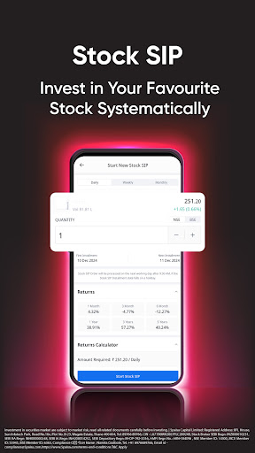 Exciting Offers for You: Zero* Brokerage: All new users enjoy zero* brokerage for the first 30 days and Special Offer for Women. Zero* Brokerage on Stock & ETF SIPs: Start SIPs with no* brokerage charges. 0%* Interest on Margin: Avail 0%* interest on margin for 30 days. *TnC Applied/5paisa reserves the right to change, alter, or discontinue the offer and its terms and conditions at its absolute discretion. Invest Smartly with 5paisa – Your All-in-One Investing & Trading App Take charge of your financial future with 5paisa, the ultimate app that caters to all your trading and investing needs. Whether you’re a beginner or a seasoned investor, 5paisa gives you the right tools and insights to help you succeed in the Indian stock market. Open your free Demat account now and start seamless trading across NSE, BSE, Mutual Funds, IPOs, and so much more. Why 5paisa? Free Demat Account: Sign up in just 5 minutes and start your journey effortlessly. Low Brokerage: Flat ₹20 per order, no hidden charges, so you get to save more! All-in-One Trading: Trade in equity, derivatives, commodities, and currencies. 100% Paperless KYC: Fully online KYC for hassle-free account creation. What You Get with 5paisa? Free Demat Account: Open your account and enjoy seamless trading with low brokerage across various segments like equity, derivatives, commodities, and currencies. Live Stock Market Data: Stay updated with real-time stock market insights from Nifty 50, BSE Sensex, Bank Nifty, and more. Seamless Stock Trading: Invest in thousands of stocks listed on NSE and BSE, set up stock SIPs, and track your portfolio easily. Expert Insights: Get daily market research, stock recommendations, and investment ideas from seasoned experts. Mutual Funds, IPOs & More Mutual Funds: Access over 4,000 zero-commission funds. Start SIPs with as low as ₹100/month and monitor your investments in real time. IPOs: Pre-apply for upcoming IPOs and receive real-time updates on your application status. SIP & Lump Sum Options: Choose between regular SIPs or one-time lump sum investments to suit your financial goals. Advanced Trading Features Algo Trading: Automate your trades with intelligent algorithms. Customize strategies & let our advanced tools handle the rest. Futures & Options (F&O): Get detailed analytics, real-time data, and advanced risk management tools to maximize your trading potential. Commodity & Currency Trading: Add diversification to your portfolio by trading in commodities and currencies. Track market trends and hedge effectively. Why Trade with 5paisa? Whether you’re building a long-term portfolio or trading actively, 5paisa is your ultimate partner in smart investing: Live Market Data: Access real-time stock prices, news, and market updates from NSE, BSE, Nifty 50, Sensex, & more. Effortless Account Management: Open and manage your account with ease, keeping track of your portfolio on the go so you never miss a market opportunity. Download the 5paisa App Today! Invest smarter with 5paisa – your go-to platform for mutual funds, stocks, IPOs, & more. Don’t wait! Download the 5paisa app to join over 47 lakh customers and become part of our growing community today! Connect with us: Website: https://www.5paisa.com Facebook: https://www.facebook.com/5paisa LinkedIn: https://www.linkedin.com/company/5paisa Instagram: https://www.instagram.com/5paisa/ Twitter: https://twitter.com/5paisa Call: 8976689766 Email: support@5paisa.com Contact us: https://www.5paisa.com/contact-us FAQs: https://forum.5paisa.com/portal/en/kb/5paisa Disclaimer: https://www.5paisa.com/terms-and-conditions 2025, Member name: 5Paisa Capital Ltd SEBI Registration Number : INZ000010231 AMFI Registration Number : ARN-104096