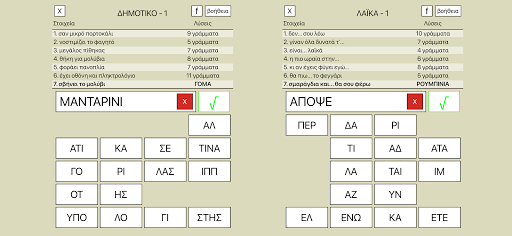 Το γνήσιο ΕΛΛΗΝΙΚΟ παιχνίδι γνώσεων με 1.200.000+ κατεβάσματα, 3.000+ πίστες και πρωτότυπες λέξεις :) Για όσους αγαπάνε τα παζλ, τα παιχνίδια γνώσεων και τα σταυρόλεξα! Παίξε, διασκέδασε, μάθε: √ Δίνονται 7 στοιχεία και ψάχνεις 7 λέξεις! √ Βρες τις λέξεις με οποιαδήποτε σειρά! √ Δεν χάνεις αν μαντέψεις λάθος! √ Χωρίς χρονικό όριο! √ ΔΩΡΕΑΝ βοήθειες αν δυσκολεύεσαι! √ Συχνές ενημερώσεις με νέες πίστες! √ Παίζουμε χωρίς σύνδεση στο ίντερνετ! √ Νέα έξτρα κατηγορία ΠΑΡΕΕΣ για όλες τις παρέες! #1 Ελληνικό παιχνίδι λέξεων για τέταρτη συνεχόμενη χρονιά! Νέα έξτρα κατηγορία για παρέες! Χωριστείτε σε ομάδες ή αντιμετωπίστε ατομικά συγγενείς και φίλους! Ποιοι θα νικήσουν; Ελάτε στην παρέα μας στο Facebook! Μάθετε πρώτοι για τις νέες πίστες! https://www.facebook.com/7lekseis Αυτόματη αποθήκευση της προόδου σας, αλλά και κωδικοί για επαναφορά επιπέδων! Πατήστε \Μενού\ και στη συνέχεια \Κωδικοί\. Σημειώστε τον κωδικό για μελλοντική χρήση! Μπορείτε να στείλετε κάθε απορία ή πρόταση στο email: info@7lekseis.gr Καλή διασκέδαση! :)
