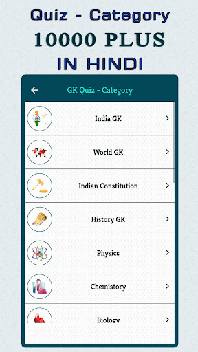 This app includes 70,000+ GK Question and it also includes thousands of MCQ questions. All Exams GK In Hindi is for all competitive exams like Civil Services, SSC, Bank PO, Railway etc. In this app 50000+ Important objective type questions are being provided. Each topic contains the simple and easy steps of learning something which you feel difficult to remember. परीक्षाओ हेतु सामान्य ज्ञान एप हिन्दी भाषा में, इस एप में सामान्य ज्ञान के 50000+ से अधिक प्रश्न उत्तरो का समावेश किया गया जिस से प्रतियोगी परीक्षाओ की तैयारी करने में आसानी होगी ! इस एप का दूसरा बड़ा फायदा यह है की यह पूरी तरह से बिना इन्टरनेट के भी इस्तेमाल की जा सकती है जिस से आपको कही भी कोई समस्या नहीं होगी 70,000+ GK Question for All Exams Offline app is useful for IAS, UPSC, SSC, IPS, BANK PO, BANK CLERK, IFS, PCS, CIVIL SERVICES, BANK SPECIALIST OFFICER, RRB or REGIONAL RURAL BANKS, STATE CIVIL SERVICES, POLICE EXAMS, SSC CGL, CISF, CAPF, NDA EXAMS, CDS EXAM, RAILWAY EXAMS, GOVERNMENT JOB EXAMS, IBPS CWE EXAMS, INSURANCE EXAMS, POST OFFICE EXAMS, NICL– Assistants, AICL – AO, UICL – AO, APPSC, BPSC, Chhattisgarh PSC, GPSC, HPSC, HPSSSB, HPPSC, JKPSC, Jharkhand PSC, Kerala PSC, MPPSC, MPSC, Delhi Subordinate Services Selection Board, OPSC, RPSC, PPSC, TNPSC, UPPSC, WBSETCL. Right now we have questions of all mixed GK quiz and one liner like India GK in Hindi General Knowledge Banking Awareness Books Author Sports Computer Knowledge Mix Questions Culture History of India Geography Economics reasoning Indian Railway GK Quiz In Hindi Bank GK Quiz In Hindi General Science GK Quiz In Hindi Physics GK Quiz Chemistry GK Quiz Biology GK Quiz In Hindi First In India GK Quiz In Hindi Hindi Grammar GK Quiz Discovery and Invention GK In Hindi SSC GK In Hindi