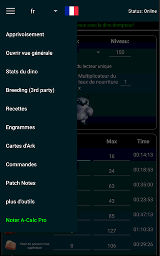 Partez à l\aventure ultime d\Ark: Survival Evolved et Ark: Survival Ascended avec l\A-Calc Ark Taming Calculator! Êtes-vous un joueur passionné d\Ark: Survival Evolved ou d\Ark: Survival Ascended? L\application A-Calc Ark Taming Calculator et compagnon est votre outil indispensable, rempli de fonctionnalités pour améliorer votre expérience Ark. Principales caractéristiques en un coup d\œil : Calculatrices et guides complets : Maîtrisez l\apprivoisement dans Ark: Survival Evolved, Scorched Earth, Aberration, Extinction, Genesis 1 & 2 et tous les DLC avec des guides et des calculateurs détaillés. Multiplicateurs de serveur : Multiplicateurs de taux de nourriture personnalisables pour les serveurs non officiels d\Ark (par exemple, \0.5\, \2\, \5\, \0.25\). Données à jour : Toujours à jour avec les dernières données du DevKit d\Ark et des tests personnels rigoureux. Détails sur l\apprivoisement : Calculs détaillés pour l\apprivoisement par assommage et par faim avec des minuteries précises. Statistiques des dinosaures : Statistiques étendues, calculs des niveaux de formation et liens directs vers le Wiki pour des informations complètes. Commandes administratives : Une liste complète des commandes admin et des astuces pour une gestion de jeu fluide. Calculatrices de reproduction : Calculs précis des temps de reproduction et statistiques détaillées des descendants. ️ Cartes et ressources : Découvrez facilement les emplacements des grottes, les apparitions de créatures et les points de ressources. Support multilingue : Disponible en anglais, espagnol, français, italien, russe, polonais, allemand, portugais-brésilien et turc. Interface élégante : Profitez d\un design moderne et intuitif pour une expérience utilisateur fluide. Pourquoi choisir A-Calc Ark Taming Calculator ? Que vous jouiez sur PC, Xbox One, Xbox Series X, PS4, PS5, Switch ou la version mobile d\Ark: Survival Evolved ou Ark: Survival Ascended, A-Calc est votre compagnon idéal. Calculez les ressources, planifiez vos engrammes, accédez aux commandes admin et bien plus encore avec cette application indispensable. Téléchargez dès maintenant l\A-Calc Ark Taming Calculator et conquérez l\univers d\Ark comme jamais auparavant! Clause de non-responsabilité sur l\utilisation équitable (Fair Use Act Disclaimer) : Clause de non-responsabilité sur les droits d\auteur en vertu de l\article 107 de la loi sur le droit d\auteur de 1976. Des dispositions sont prises pour l\\utilisation équitable\ à des fins telles que la critique, le commentaire, le reportage d\informations, l\enseignement, la bourse d\études, l\éducation et la recherche. L\utilisation équitable est une utilisation autorisée par la loi sur le droit d\auteur qui pourrait autrement être considérée comme une violation. 2016 codé par A-Calc www.a-calc.de, une application communautaire non officielle d\Ark et n\est pas affilié à l\éditeur du jeu. Le contenu de l\application est disponible sous CC BY-NC-SA 3.0 sauf indication contraire. Le contenu du jeu et les matériaux sont des marques et des droits d\auteur de leurs éditeurs respectifs et de leurs concédants de licence (Studio Wildcard). Tous droits réservés.