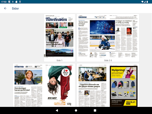 Med eAdressa applikasjonen kan du kjøpe og laste ned papiravisen digitalt tilpasset din Android telefon eller lesebrett. Last ned applikasjonen i dag og få første avis gratis. Tilgang til eAdressa er inkludert for alle våre abonnenter. I appen kan du kjøpe enkeltutgaver, 30 dagers abonnement eller logge inn abonnement kjøpt hos Adresseavisen. Prisene for tilgang vil være * Enkeltutgave - 35 NOK * 30 dagers abonnement - 199 NOK Dersom du har abonnement på papiravisen gjelder egne priser og kjøpsbetingelser. Mer informasjon om dette kundeservice.adressa.no. Kjøpte utgaver i Google Play vil kun være tilgjengelig på din Android-enhet. Applikasjonen inneholder: - Mulighet for å bla gjennom sidene, zoome inn på bilder og artikler, liste opp alle artiklene kategorisert etter tema eller lese en enkelt artikkel i artikkelvisning. - Oversiktlig seksjonsvisning og sidevisning. - Mulighet for nedlasting av dagens avis og lese avisen uten internettilgang. - Eget arkiv med aviser du har lastet ned. - Mulighet for fritekstsøk i den enkelte avisutgaven. - Klikkbare annonser. - Mulighet for deling på sosiale medier.