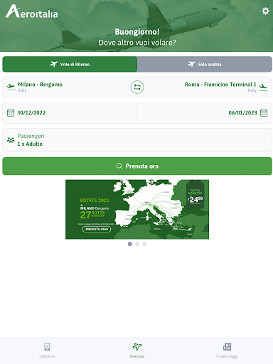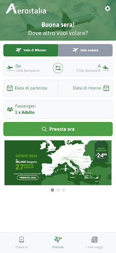 Scarica l\app di Aeroitalia e sfrutta al massimo i tuoi viaggi! Scoprite destinazioni incredibili, scoprite vantaggi esclusivi e siate i primi a conoscere le offerte a tempo limitato! Aeroitalia è il modo migliore per volare verso le vostre destinazioni europee preferite: volate verso aeroporti primari e centrali e godetevi i nuovi aeromobili e l\ottimo servizio a bordo ai prezzi più convenienti. Visitate i vostri amici e le vostre famiglie, viaggiate per lavoro o per studio, evadete in città, pianificate la vostra vacanza speciale e non perdetevi mai una vacanza con i vostri cari! Con la tua app Aeroitalia puoi ora: · Cercare e prenotare il vostro prossimo viaggio verso la destinazione dei vostri sogni · Aggiungere servizi extra (pacchetti, posti a sedere, bagagli, ecc.) per un volo più confortevole · Effettuare il check-in online e portare con sé la carta d\imbarco in formato digitale · Rimanere aggiornato sulle nostre offerte, prodotti e condizioni più recenti
