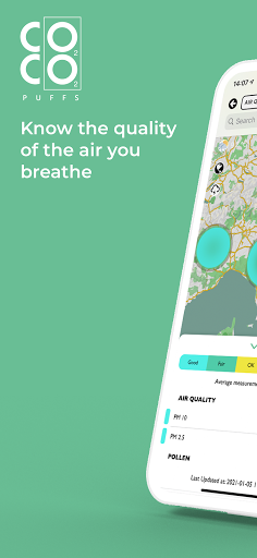 Air quality Real-time Heat map | CO2CO2Puffs is an app designed using advanced machine learning algorithm and big data collection to display, Air, Water, Pollen, Climate data in real time. The air data, displays the Particulate Matter PM2.5 and PM 10 which causes serious damages to children and adults. Different color codes are used in the app to visually present the differences.