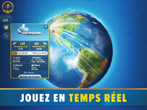 DÉCOUVREZ AIRLINES MANAGER TYCOON 2025 - ASSEMBLEZ VOTRE FLOTTE AÉRIENNE AVEC LE SIMULATEUR ULTIME DE GESTION TYCOON DE COMPAGNIE AÉRIENNE Jouez GRATUITEMENT au meilleur jeu de gestion Tycoon de flotte aérienne et devenez le plus grand dirigeant de compagnie aérienne au monde : Gérez votre compagnie aérienne comme un véritable magnat et devenez le plus grand PDG du monde de l\aviation ! Créez votre flotte parmi 130 modèles d\avions réalistes tous utilisés par l\aviation civile moderne. Boostez la croissance de votre compagnie aérienne en négociant férocement avec les autres joueurs sur le marché de l\occasion. Optimisez la gestion de votre réseau de compagnies aériennes grâce au contrôle du trafic aérien et aux résultats en temps réel. Choisissez parmi 2 600 aéroports pour acheter vos hubs et configurez individuellement la route de vos avions. Débloquez plus de 500 options de recherche dans le centre R&D. Personnalisez votre compagnie aérienne en choisissant parmi plus de 200 services disponibles. REJOIGNEZ LA PLUS GRANDE COMMUNAUTÉ DE GESTIONNAIRES DE COMPAGNIES AÉRIENNES TYCOON : Plus de 10 millions de dirigeants jouent à ce jeu de gestion de flotte aérienne 130 avions et 2 600 aéroports disponibles 500 options de recherche et 200 services aux passagers à débloquer Partenariat officiel avec l\IATA (Association internationale du transport aérien) Actuellement disponible en 8 langues (anglais, français, espagnol, allemand, italien, portugais, indonésien et russe) Plébiscité par les passionnés d\aviation, les amateurs de jeux d\aéroports et de compagnies aériennes et les fans de jeux de gestion et de management du monde entier ! 2 MODES DE JEU DE SIMULATION DE COMPAGNIES AÉRIENNES : Professional AM - TEMPS RÉEL, progression réaliste (7 heures pour un vol Paris CDG-New York JFK). Tycoon AM - MODE RAPIDE, vitesse du temps multipliée par 7, progression rapide (1 heure pour un vol Paris CDG-New York JFK). FONCTIONNALITÉS : Achetez des aéroports Achetez ou louez des avions et assurez leur maintenance Ouvrez de nouvelles routes et de nouveaux vols et mettez en place un contrôle du trafic aérien Planification détaillée des vols et de la flotte aérienne avec contrôle du trafic aérien dans les aéroports du monde entier Échangez vos avions en temps réel avec les autres joueurs avec le système d\enchères du marché de l\occasion Choisissez entre une gestion simplifiée ou complexe de votre compagnie aérienne Créez et gérez toute la stratégie Tycoon de votre flotte (développement, banques, finances, maintenance, services, R&D, marketing, RH) Créez, gérez et admirez votre empire grâce à la carte en temps réel des vols et des aéroports Développez votre empire et dominez le secteur des compagnies aériennes et de l\aviation grâce à votre flotte, vos aéroports et vos routes aériennes. Fixez vos propres tarifs : audit des itinéraires de votre flotte, simulation de la demande Créez et proposez une gamme complète de services : meilleur accès aux aéroports, prix attractifs, confort à bord pendant les vols, etc. Contrôlez les finances de votre flotte : prêts bancaires, comptabilité et compte de trésorerie détaillés Formez votre personnel et vos managers : intérimaires ou embauchés, dans tous les secteurs de l\aérien Débloquez de nouveaux bonus pour votre flotte pendant les ateliers Une connexion réseau est nécessaire pour jouer. Liens officiels du jeu •Site Internet : www.airlines-manager.com •Forum : https://forum.paradoxplaza.com/forum/forums/airlines-manager.1087/ •Facebook : facebook.com/AirlinesManager •Twitter : twitter.com/airlinesmanager •YouTube : youtube.com/user/AirlinesManager2HQ •Centre d\assistance : https://help.airlines-manager.com •Une suggestion, une préoccupation ou un problème dans le jeu : marion@airlines-manager.com• • www.playrion.com