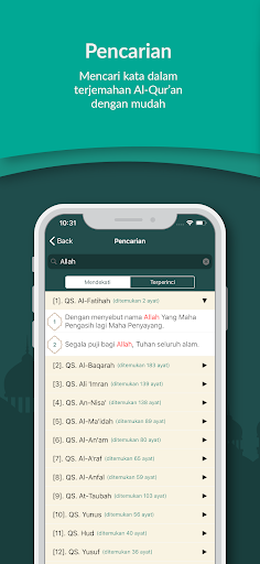 Bismillaahirrahmaanirrahiim. Assalamu\alaikum Warahmatullah Wabarakatuhu. Al Quran digital dengan terjemahan Bahasa Indonesia dan audio mp3 murattal full, 114 surah atau 30 juz tanpa pembatasan. Dapat dibaca offline serta tampilan antar muka yang user friendly. Semua Fitur Gratis Tanpa Pembatasan Fitur-fitur: - Design yang menarik, menggeser layar untuk berpindah surah atau juz. - Baca Al Quran bisa dengan mode layar lanscape atau portrait. - Tersedia tema terang dan gelap. - Surah Index (daftar Surah). - Juz Index (daftar Juz). - Rasm / penulisan (IndoPak dan Utsmani style). - Tulisan latin (Transliterasi). - Terjemahan Bahasa Indonesia, pilihan terjemahan (KemenAg-RI dan Tafsir Al Jalalain Indonesia). - Salin ayat-ayat Al Quran. - Bagikan ayat-ayat Al Quran. - Bookmark ayat-ayat Al Quran. - Penanda bacaan terakhir. - Tajwid berwarna. - Backup-restore bookmark dan penanda bacaan terakhir ke Cloud. - Melihat kata per kata terjemahan berdasarkan dari Arabic-nya ke Bahasa Indonesia. - Audio mp3 murattal 30 Juz, terdapat 8 pilihan qori. - Audio control murattal (play, pause, stop, next, prev, repeat). - Audio manager murattal (untuk mendownload atau menghapus file audio murattal sekaligus banyak). - Pencarian ayat-ayat berdasarkan kata kunci di terjemahan. - Jadwal sholat dan imsakiyah termasuk alarm adzan. - Kalendar jadwal sholat dan imsakiyah untuk 30 hari ke depan. - Arah kiblat. - Kalender hijriah. - Widget jadwal sholat untuk di home-screen (khusus premium). - Seluruh fitur bisa berjalan offline (Al Quran offline). * Dan fitur-fitur berikutnya yang sedang dalam pengembangan.