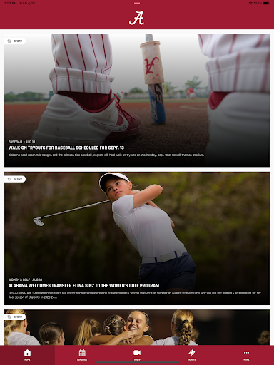 The official University of Alabama athletics app is a must-have for fans headed to campus or following the Crimson Tide from afar. With exclusive video, interactive social media, and all the scores and stats surrounding the game, the Alabama Gameday Live app covers it all! + SOCIAL STREAM - View and contribute to real-time social media feeds from the team and fans + SCORES & STATS - All the scores, stats, and play-by-play information that fans need and expect during live games + NOTIFICATIONS - Custom alert notifications to let fans know everything surrounding Gameday + FOLLOW STUDENT ATHLETES – Be updated anytime your favorite student athletes have news, stats, and other updates.