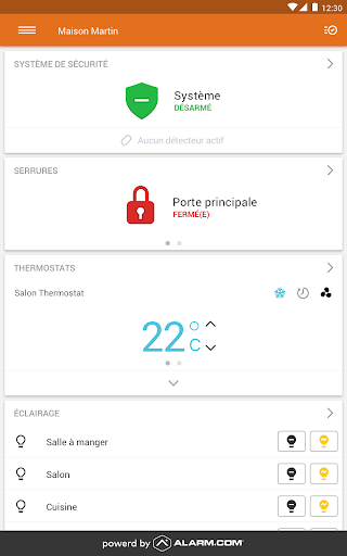 Avec un système de sécurité activé Alarm.com, vous pouvez surveiller et contrôler votre maison ou votre entreprise en temps réel et de n\importe où. Les solutions de sécurité interactive, de surveillance vidéo, de gestion d\énergie et de domotique d\Alarm.com vous donnent une information instantanée et un contrôle à distance pour les endroits qui vous tiennent le plus à cœur. Remarque : Cette application exige un système compatible et un forfait Alarm.com interactif. La disponibilité des fonctionnalités varie selon le système, l\équipement et le forfait. Visitez www.alarm.com pour de plus amples renseignements. Fonctionnalités à distance: ✓ Voyez ce qui se passe dans votre propriété ✓ Armez ou désarmez votre panneau de sécurité ✓ Regardez la vidéo en direct et les clips enregistrés par vos caméras de sécurité ✓ Allumez ou éteignez les éclairages ✓ Réglez la température idéale ✓ Verrouillez et déverrouillez les portes ✓ Voyez des images de l\activité importante captée par les image sensors de Alarm.com ✓ Faites des recherches à travers votre historique complet d\événements ✓ Et beaucoup plus! Avec Alarm.com, vous pouvez aussi recevoir des courriels, des messages texte et des avis push en temps réel pour les événements spécifiques qui sont importants pour vous. Au-delà des événements reliés à des urgences importantes, vous pouvez aussi immédiatement savoir quand : • Vos enfants reviennent à la maison de l\école • Vous êtes parti au travail ou en vacances et avez oublié d\armer votre système • L\aide ménagère arrive ou part • La porte de garage est laissée ouverte • Le promeneur du chien ou le gardien du chat arrive • Il y a une inondation ou une fuite d\eau dans votre sous-sol • Vos enfants ouvrent votre armoire médicale ou à liqueurs • Quelqu\un modifie les paramètres de votre thermostat • Votre système de sécurité est désarmé (et qui l\a désarmé) • Quelqu\un tente de se connecter à votre compte • Et bien plus!