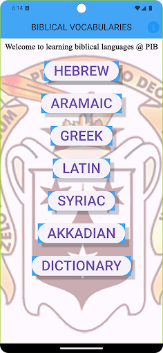 Alef Omega helps students to learn and memorize the following biblical vocabularies: Hebrew, Greek, Aramaic and Latin. The vocabularies are taken from the textbooks in use at the Pontificio Istituto Biblico (PIB). Users can choose any chapter or any section or category to practice from the referenced textbooks. There is extra content in the Hebrew section featuring transliteration and parsing of verbs. The dictionary helps to look up some common words/terms in English and return in Hebrew, Greek, Latin or Syriac. All of this is offered free to assist beginning biblical students. The list of vocabularies: HEBREW - Introduction to Biblical Hebrew by Thomas Lambdin. - 90% Hebrew vocabulary of the Old Testament. - Parsing Biblical Hebrew Verbs. - Hebrew Vocabulary Categories ARAMAIC - An Introduction to the Aramaic of Targum byThomas O. Lambdin. - Basics of Biblical Aramaic by Miles V. Van Pelt. - Biblical Aramaic vocabulary by frequency. - Biblical Aramaic paradigms. GREEK - Grammar of New Testament Greek by C. Sunil Ranjar. - An Introduction to the Study of New Testament Greek by James Swetnam. - 92% Greek NT vocabulary. - Basics Biblical Greek by Bill Mounce. - Greek NT – Oak Hill College. - English terms and Greek roots. LATIN - A Primer of Ecclesiastical Latin by Collins. - Wheelock’s Latin. - 1000 Most Common Latin Words. - Latin Greek Roots. SYRIAC - Introduction to Syriac by W. M. Thackston - Syriac OT & NT Vocabulary AKKADIAN - A Grammar of Akkadian by John Huehnergard