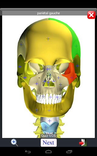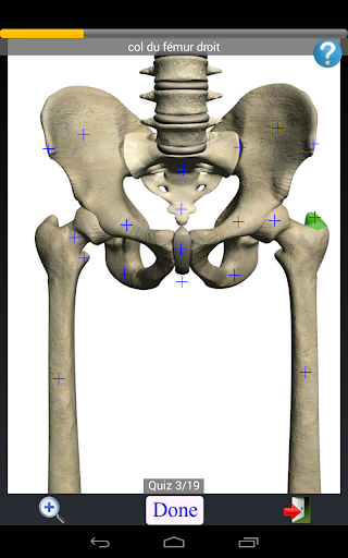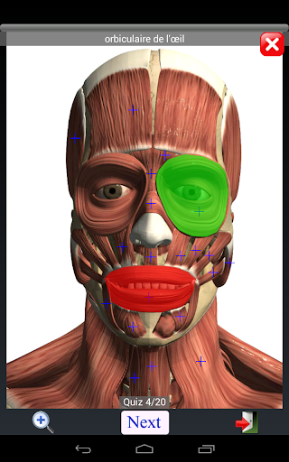 APERÇU: Anatomie Quiz Lite vous teste à quelle vitesse vous pouvez identifier l\emplacement correct donné un nom d\objet. Toutes les images sont générées à partir de modèles d\anatomie 3D virtuels. Elle compte plus de 500 positions quiz. CARACTÉRISTIQUES: ★ Des images haute résolution. ★ Une pincée de zoom (vous permettent d\utiliser deux doigts pour zoomer / out images). ★ Position quiz avec une minuterie. ★ S\installer en fonction de la carte SD. ★ Navigation rapide - passer à un sujet ou un domaine différent en sélectionnant la vignette ou liste. ★ design à la fois pour le grand écran et petit écran et peut fonctionner sur les deux téléphones haut de gamme et bas de gamme. ★ idéal pour apprendre l\anatomie et la physiologie ★ mises à jour périodiques gratuites. ★ Peut être utilisé comme jeux d\anatomie. Quiz instruction Vous appuyez d\abord croix pour sélectionner l\objet assorti avec le nom de la cible (affichage dans la barre de texte en haut et pincée de zoom est autorisée). Appuyez ensuite sur le bouton «Terminé» pour confirmer votre sélection ou d\attendre le délai d\expiration. Appuyez sur le bouton \Suivant\ pour passer le test suivant.