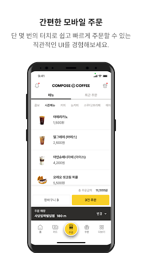 컴포즈커피 앱의 직관적인 디자인과 신속한 주문 시스템으로 더 쉽고 빠르게 커피를 즐겨보세요. 엄선된 원두로 내리는 맛있는 스페셜티 커피를 합리적인 가격에 제공합니다. • 간편한 모바일 주문 단 몇 번의 터치로 쉽고 빠르게 주문할 수 있는 직관적인 UI를 경험해보세요. • 신속한 결제 및 픽업 주문부터 결제, 픽업까지 초고속으로! 여러분의 소중한 시간을 아껴드립니다. • 세련된 디자인 트렌디한 디자인과 사용자 중심 인터페이스로 커피 주문의 즐거움을 더합니다. • 맛과 품질에 자신 있는 커피 엄선된 원두와 정성스러운 로스팅으로 언제나 최상의 맛을 보장합니다. • 합리적인 가격 부담 없는 가격에 프리미엄 커피 경험을 제공하여, 매 순간 특별한 커피 타임을 만들어 드립니다. 컴포즈커피와 함께 모바일로 즐기는 빠르고 세련된 커피 라이프를 경험해보세요.