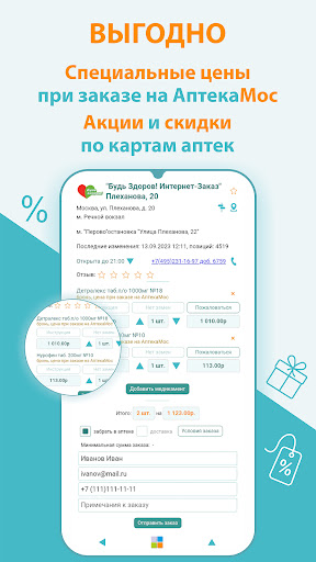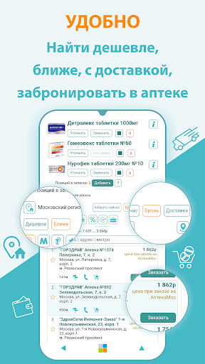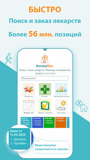 АптекаМос поможет найти и купить лекарства подешевле в ближайших аптеках Москвы, Подмосковья и регионов. Доставка лекарств. Цены на лекарства представлены на карте или списком. Особенности приложения АптекаМос: - поиск лекарств списком; - сохранение своих списков и истории поиска; - сравнение стоимости лекарств в аптеках; - разброс цен в аптеках; - подбор формы выпуска, дозировки и производителя лекарственных препаратов; - автоматический подбор замены; - инструкции по применению; - заказ лекарств в аптеках; - справочник аптек; - аптеки около метро; - ближайшие аптеки; - маршрут до аптеки; - аптеки и цены на карте; - избранные аптеки; - быстрое обновление данных от аптек. Партнеры АптекаМос: Планета здоровья, Ригла, Будь здоров!, Алоэ, Ваша №1, Аптека-Эконом, Аптечество, Вита Экспресс, Горздрав, Живика, Здоров.ру, ЗдравСити, ЛенОблФарм, Магнит-Аптека, Невис, Новосибирская аптечная сеть, Озерки, Самсон-Фарма, ТРИКА, Фармленд, Farmani и многие другие. Заказать лекарства онлайн можно в Москве, Санкт-Петербурге, Казани, Нижнем Новгороде, Перми, Краснодаре, Ростове-на-Дону, Новосибирске, Красноярске, Екатеринбурге, Волгограде, Самаре, Саратове, Волгограде, Челябинске, Омске, Уфе, Владивостоке, Воронеже, Сочи, Крыму и других городах. AptekaMos.ru внесен в перечень социально-значимых ресурсов (СЗР №48) и является победителем конкурса \Платиновая унция\ 2021! Внимание! Представленная в приложении информация о лекарственных препаратах не является основанием для самолечения. Отзывы, вопросы и пожелания по работе приложения присылайте на mobile@aptekamos.ru Сайт: AptekaMos.ru