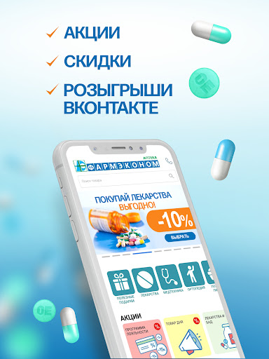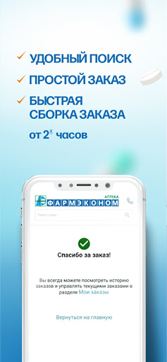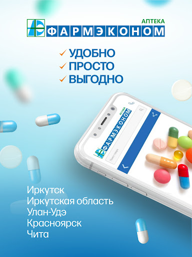 Интернет-аптека ФАРМЭКОНОМ — это мобильное приложение для поиска лекарств, в котором можно заказать лекарства в аптеки ФАРМЭКОНОМ в Красноярске, Улан-Удэ, Чите, Иркутске, Ангарске и Иркутской области. В приложении аптеки ФАРМЭКОНОМ вы можете: - Быстро найти лекарство с помощью удобного поиска или каталога аптеки. - В несколько кликов оформить онлайн заказ лекарств в ближайшую к дому или месту работы аптеку. - Получить уведомление об изменениях в заказе. - Легко отследить статус заказа. - Посмотреть в каких аптеках есть нужные лекарства в наличии. - Добавить товары в избранное. - Узнать часы работы и адреса аптек нашей сети. - Узнать о наших акциях на лекарственные препараты, выгодных предложениях, скидках в аптеках, товарах дня и программах лояльности, позволяющих увеличить выгоду. - Найти подробные инструкции препаратов и товаров из нашего ассортимента. - Купить в аптеке, оплатив заказ картой, наличными или qr-кодом - Прочитать наши интересные и полезные статьи, а также узнать новости. В приложении интернет-аптеки ФАРМЭКОНОМ вы найдете: - лекарственные препараты, - биологически активные добавки (БАДы), витамины и минералы, - ортопедические изделия и средства для ухода за лежачими больными, - медицинские изделия; - медтехнику (медицинская техника), - косметику (Уходовая косметика, косметика для волос, наборы косметики) - товары личной гигиены, - детские товары, - продукты здорового питания, - контактные линзы Широкий ассортимент позволяет купить лекарства и медицинские препараты, которые качественно и профессионально помогут решить различные специализированные проблемы. Бесплатное приложение ФАРМЭКОНОМ, не содержит платных подписок, дополнительных сборов за обслуживание. При заказе в приложении ФАРМЭКОНОМ доставка в аптеку осуществляется бесплатно. Цены в аптеках ФАРМЭКОНОМ выгодные, кроме этого, каждый месяц здесь проходят акции и скидки, позволяющие существенно сэкономить. Все фармацевты ФАРМЭКОНОМ прошли обучение по специальности «Фармация»*, что гарантирует высокий уровень профессионализма и квалифицированную консультацию в аптеках ФАРМЭКОНОМ. *Фармация - аптечное дело произошедшее от лат. pharmacia, от греч. «лекарство и применение лекарств» Закажите в нашем приложении и забирайте в удобной аптеке рядом с вами!