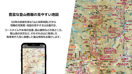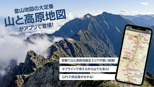 ■2024年版発売のお知らせ■ 2024年版63エリアの地図を更新しました。 ■主な特徴 ①スマホの位置情報で、現在地がわかる! 「山と高原地図」の地図上で、自分の位置がすぐわかるから、登山中の現在地確認もスムーズです。 道迷い、遭難などいざという時の対策として安心です。 ②定額(500円/月 or 4800円/年)で63エリアの「山と高原地図」が使い放題 深田久弥氏選定の「日本百名山」全山を全て収録し、その他主要な山岳エリアを網羅した登山地図で登山ライフを充実させよう。 ③初めての定期購読から7日間無料 まずは無料期間で「山と高原地図」を体験しよう。 ④執筆者が実際に歩いて調査した情報が充実 コースタイムや水場の位置、高山植物などの見どころ、登山道の状況など、それぞれの山に精通した執筆者が実際に現地を歩いて調査した最新の登山情報が満載です。 60年以上の実績を誇る「山と高原地図」だから、地図の見やすさはお墨付き! ※スマホアプリでの見やすさを考慮して、地形表現や経緯度線の省略などの変更も加えています。 ⑤圏外でも使える! 地図は事前にダウンロードしてスマホに保存するので、電波が届かない山の中でも使えます。 ⑥登山ルートが記録できる! 登山中に歩いた位置情報の軌跡を、登山ルートとして記録できます。 記録したルートは、アプリで見るのはもちろんメールでパソコンに送信して保存・編集したり、「ヤマレコ」などのサイトへ投稿して、思い出を残せます。 ⑦簡単に登山計画ができる! 地図上のポイントをタップしていくだけで、登山計画・行程表が簡単に作成できます。 コースタイムが設定したタイム倍率で自動計算されるので、自分に合った無理ない計画が可能です。 ⑧付録冊子を電子書籍で読める! 山域の特徴やコースガイドなど役立つ情報の付録冊子を電子書籍で読めます。 ■出版物「山と高原地図」とは 「山と高原地図」シリーズは1965年創刊の『山岳地図』を起源とする登山地図のロングセラーです。 各商品について、そのエリアに精通した<山のプロ>が現地調査を実施、その成果を元に毎年改訂している日本唯一の全国展開の登山地図シリーズとして安定した人気を獲得してまいりました。 情報の確かさ、地図の見やすさ、コースタイムや危険箇所の表示、アクセス情報・付録の充実ぶり、耐水紙の採用等から登山に必携の地図との定評をいただき、安心安全の地図ブランドとして定着しています。 ~こだわりの一例~ ・雨天でも問題なく使えるよう、地図の素材には水にぬれても破れにくい耐水性紙を使用。 インクがにじまないよう「ニス引き加工」も。 ・その山に精通した担当執筆者が、実際に現地を歩いて調査 ・色や実線・破線、目安のコースタイムなどによって、登山コースの難易度を表現 ・山小屋、水場、危険個所、迷いやすい場所、目印など登山の安心・安全に役立つ情報が満載 ・花や高山植物の観賞ポイント、絶景ポイントなど、登山を楽しむためのアドバイスも掲載。 ・また付録の冊子には、山の名前の由来や概要、山域の気象、動物、植物の特徴や、おすすめコースなど、地図に載せきれない情報がぎっしり。 ■収録内容 ・書籍地図「山と高原地図」の登山地図を収録しています。 (拡大図の一部・周辺図・冊子掲載情報などは未収録) - ラインナップ - 1 利尻・羅臼 知床・斜里・阿寒・礼文 2 ニセコ・羊蹄山 暑寒別岳・駒ヶ岳 3 大雪山 トムラウシ山・十勝岳・幌尻岳 4 八甲田・岩木山 白神岳・十和田湖・田代岳 5 岩手山・八幡平 秋田駒ヶ岳・姫神山・森吉山・和賀岳 6 栗駒・早池峰 焼石岳・神室山 7 蔵王 面白山・船形山 8 鳥海山・月山 羽黒山 9 朝日連峰 以東岳・摩耶山 10 飯豊山 朳差岳・二王子岳 11 磐梯・吾妻 安達太良 12 那須・塩原 高原山・八溝山 13 日光 白根山・男体山 14 尾瀬 燧ヶ岳・至仏山・会津駒ヶ岳 15 越後三山 平ヶ岳・巻機山 16 谷川岳 苗場山・武尊山 17 志賀高原 草津白根山・四阿山 18 妙高・戸隠・雨飾 火打山・高妻山・信越トレイル 19 浅間山 軽井沢・長野原の山々 20 赤城・皇海・榛名 袈裟丸山・足尾山地 21 西上州 妙義山・荒船山 22 筑波山・加波山 高鈴山・奥久慈男体山 23 奥武蔵・秩父 武甲山 24 奥多摩・奥秩父総図 25 奥多摩 御岳山・大岳山 26 大菩薩嶺 27 雲取山・両神山 28 金峰山・甲武信 29 高尾・陣馬 30 三浦・房総 31 丹沢 32 箱根 金時山・駒ヶ岳 33 伊豆 天城山 34 富士山 御坂山地・愛鷹山 35 八ヶ岳 蓼科・美ヶ原・霧ヶ峰 36 日本アルプス総図 37 白馬岳 38 鹿島槍・五竜岳 39 剱・立山 40 槍ヶ岳・穂高岳 上高地 41 乗鞍高原 42 御嶽山 小秀山・奥三界岳・位山三山 43 木曽駒・空木岳 44 北岳・甲斐駒 45 塩見・赤石・聖岳 46 白山 荒島岳・能郷白山・金剛堂山 47 御在所・霊仙・伊吹 48 比良山系 武奈ヶ岳・赤坂山 49 京都北山 50 北摂・京都西山 箕面・妙見山・中山・丹波篠山 51 六甲・摩耶 須磨アルプス 52 金剛・葛城 生駒山・紀泉高原 53 高野山・熊野古道 伯母子岳 54 大峰山脈 55 大台ヶ原 高見山・倶留尊山 56 氷ノ