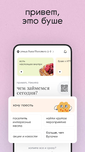 Привет, это буше. Мы создаём и развиваем атмосферные места для еды, общения и вдохновения в Петербурге и Москве. Это наше приложение-экосистема. Тут можно заказать доставку, пробить скидку по QR-коду, узнать о новинках буше и даже найти крутое мероприятие на выходные. В общем, задача у приложения простая – быть полезным. В чём полезность: - твоя скидка всегда под рукой – есть быстрый доступ к QR-коду; - буше совсем близко – можно оформить доставку через удобный каталог; - больше чем булочки – рассказываем о наших мероприятиях и событиях друзей, а ещё делимся новостями и полезными статьями; - есть настоящее – у каждого продукта указаны описание, состав и подсчитанный баланс КБЖУ; - жизнь любовь работа – внутри можно узнать о вакансиях буше, если ты захочешь быть в нашей команде; - всегда на связи – если что-то пошло не так (или, наоборот, всё было супер!), можно оставить отзыв на заказ или конкретную точку. Если заметишь технический сбой, то напиши нам kachestvo@bushe.ru Поправим.