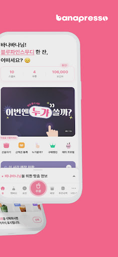 더 즐거운 바나프레소 이용을 위한 모바일 서비스를 만나보세요. 바나프레소의 맛있는 메뉴를 모바일로 주문·결제해 매장에서 바로 픽업할 수 있습니다. 간편하게 적립한 스탬프로 무료 음료 혜택도 누리고, 이벤트 정보도 한눈에 확인하세요. ■ 주요 기능 - 주문하기: 음료, 푸드 등 다양한 메뉴를 확인해 모바일에서 바로 주문·결제할 수 있습니다. - 스탬프: 스탬프 적립 내역과 유효기간을 확인할 수 있습니다. 12개 적립 시, 무료 음료 쿠폰을 드립니다. - 쿠폰: 보유 쿠폰 및 사용내역을 확인할 수 있습니다 - 이벤트: 매장 및 SNS에서 진행되는 바나프레소의 다양한 혜택을 확인할 수 있습니다. - 내 정보: 주문 히스토리를 확인하고, 푸시 알림을 설정할 수 있습니다.