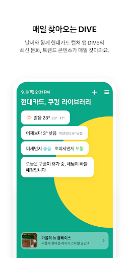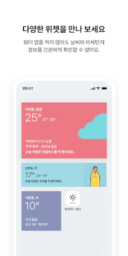 현대카드 웨더는 새로운 방법으로 날씨를 표현하는 현대카드의 날씨 정보 서비스입니다. 위트 있는 날씨 멘트와 감각적인 표현으로 현대카드만의 차별화된 날씨 정보를 제공합니다. [주요 서비스] -단순 숫자가 아닌 위트 있는 멘트를 통해 날씨를 확인하실 수 있습니다. -어제 그리고 작년과의 날씨 비교를 통해 직관적으로 오늘의 날씨를 확인하실 수 있습니다. -다양한 방식으로 표현된 날씨 테마를 확인하실 수 있습니다. -현 위치의 미세먼지, 초미세먼지, 오존 등의 대기정보를 한 눈에 확인하실 수 있습니다. -현재, 내일, 모레로 세분화 된 전국의 미세먼지 정보를 제공합니다. [상세 서비스] - 시간대별 날씨 예보 안내 - 주간 날씨, 전국 날씨 안내 - 해외 여행시 필요한 해외 도시 기후 정보 - 미세먼지, 초미세먼지, 오존 정보 제공 - 현재, 내일, 모레까지 전국 미세먼지 정보 제공 - 체감온도, 습도, 풍속 등의 상세날씨 - 자외선지수, 빨래지수, 세차지수 등의 생활지수 - 기상특보 [필수 접근 권한] - 저장공간 : 테마이미지 다운로드를 위한 저장공간 [선택 접근 권한] - 위치: 현재 위치를 중심으로 날씨 정보 이용 * 선택 접근 권한은 해당 기능을 사용할 때 허용이 필요하며, 허용하지 않더라도 해당 기능 외 서비스 이용이 가능합니다. [이용안내] - 현대카드 회원, 비회원 모두 서비스 이용이 가능합니다. - 상기 서비스는 Android 7.1이상에서 이용할 수 있습니다. - Android 7.1 이상에서는 위젯을 통해 날씨를 확인할 수 있습니다.