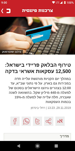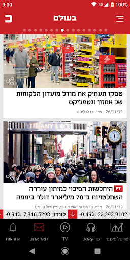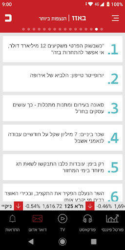 כלכליסט גאה להציג אפליקציה משופרת עם חוויית משתמש מתקדמת ומעולה. האפליקציה החדשה מהירה הרבה יותר וידידותית יותר למשתמש. שיפרנו משמעותית את הביצועים, שדרגנו את הגרפיקה, הוספנו פיצ\רים וקיצורי דרך לערוצים ייחודיים, והכל כדי לתת לכם חוויה כלכלית מתקדמת. באפליקציה תוכלו כמובן למצוא מגוון ערוצי תוכן כלכלי איכותי בהם שוק ההון, נדל\ן, חדשות מהעולם, משפט, פרסום ושיווק, פנאי ועסקי ספורט. גלישה נוחה בין הערוצים מתאפשרת באמצעות גלילה ימינה ושמאלה. גלילה מתאפשרת גם בין כתבות בתוך כל ערוץ. תרצו לשתף? כפתורי השיתוף נגישים עוד לפני הכניסה לכתבה עצמה. הפורטל הפיננסי יעדכן אתכם בכל דקה לגבי מצב הבורסות בתל אביב ובעולם, ותוכלו גם לבנות תיק אישי משלכם ולהתעדכן במצב המניות שמעניינות אתכם. גלישה נעימה, צוות כלכליסט ======================================================================== Calcalist Online is proud to present its new application, offering users a cutting-edge financial experience. The new application is more user-friendly, customizable and offers extensive sharing features. The homepage offers clear and comprehensible headlines and live ticker data as well as a \most popular\ list. The application has a variety of finance, economy and general channels, such as stock market reports, real estate, local and global current affairs, legal affairs, lifestyle and sports. A free scrolling feature allows easy navigation in the homepage and among the channels. Bold and accessible share buttons allow sharing without having to open new pages. Our new application is easily customizable, and allows users to select channels and create favorite lists according to preference, on their devices. Regular, by-the-minute updates keep users updated on market activity on TASE and around the globe and users can create personal stock portfolios and receive updates on specific stock. The new Calcalist application offers users a one-click \Red Email\ update feature in which they can share content, images and videos from newsworthy events.