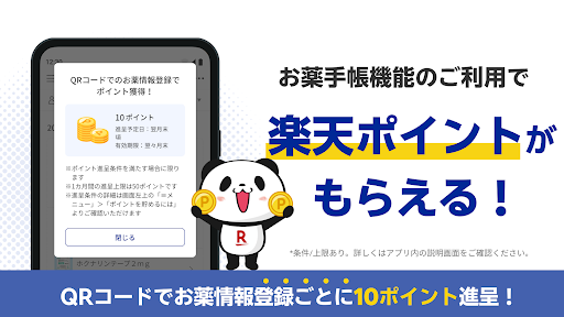 ついに!【ポイントが貯まる】おクスリ手帳機能が新登場! 楽天公式、全国の調剤薬局予約/処方薬の自宅配送アプリ。 利用料無料、送料無料、ポイントも貯まる! 急がないおクスリは「薬局に寄らずに自宅に配送」でラクラク! または当日「薬局での受け取り」なら事前予約で待ち時間を有効活用! QRからおクスリ手帳に登録のたびにポイントも貯まる! 一度体験したらやめられない。おクスリの受け取り・登録をより賢く! 【おクスリ受け取りで困った経験ありませんか?】 ・「昼休みで病院には行けたけど、おクスリを待っている間に会議が迫り、泣く泣く途中で帰社...」 ・「大きな病院前の薬局で、出来上がりまでの待ち時間30分以上...」 ・「長い待ち時間で子供が泣き出してしまった...」 ・「待ち合いが混んでいて、新たな感染が心配...」 ・「会計が現金のみ。現金が足りず一度ATMへ...」 ・「紙のおクスリ手帳を忘れて、詳細を手書きするはめに...」 【ヨヤクスリならこう変わる!賢い受け取り方】 ■ いつももらっているおクスリなど、「急がないおクスリ」の場合 ・「病院で診察後、薬局に寄らずにおクスリを自宅に配送」 ・「出先・旅先でおクスリの説明を受けて、後日自宅に届く」 ※下記のような症状で、お手元に在庫がある場合など、急がない場合はご自宅に配送がおススメ! ・花粉症・抗アレルギー薬 ・皮膚疾患系の塗り薬 ・高血圧の飲み薬 ・高脂血症・高尿酸血症の飲み薬 ・etc ■ 急な体調不良、その他 「当日におクスリが受け取りたい」場合 ・「昼休みに病院で処方せんをもらってアプリで送信。退勤後に会社近くの薬局でスムーズ受け取り」 ・「大きな病院近くにある待ち時間の長い薬局。薬局でじっと待たずにランチや買い物を済ませた頃にスムーズ受け取り」 ・「自宅から離れた病院なら、自宅近くのかかりつけ薬局を指定。帰宅中におクスリができてスムーズ受け取り」 ・「いつもの病院で診察を終えて、その後予定のある出先周辺の薬局を指定。移動時間を有効に使えてスムーズ受け取り」 ・「大型ドラッグストア内の調剤薬局を指定。日用品の買い物を済ませている間におクスリ完了でスムーズ受け取り」 ・「オンライン決済で、薬局ではおサイフいらず」 【ヨヤクスリの主な特徴】 ■ カンタン登録!利用料無料! ・ 楽天IDで情報を引き継ぎ、初回登録もカンタン完了! ■ 選べるおクスリの受け取り方 ・ 自宅で受け取る:急がないおクスリはこちらで。ご自宅に配送。 ・ 薬局で受け取る:事前予約で待ち時間を短縮・有効活用 ■ 薬局に寄らずに自宅に届く! ・ おクスリの説明はオンライン。だから全国どこからでも好きな場所で ・ ご自宅のポストに届く! ※数量が多い場合を除き、ポスト投函。多い場合でも宅配ボックスにお届け可能 ・ 最短当日発送 ※13時までにオンライン服薬指導完了の場合。在庫がない場合を除く。 ・ 送料無料 ■ 薬局での受け取りもカンタン予約! ・ 近くにある薬局から選択可! ・ 誰もが知っている薬局チェーンも掲載! ・ お気に入り薬局登録で次回以降、検索不要! ・ カメラ撮影でカンタン処方せん送信! ・ オンライン決済を選択で薬局での会計もおサイフいらず! ・ 設定もラクラク!楽天ID連携で、いつもお買い物で使用しているカードを自動取得! ・ 処方せんを事前に送っているから、薬局ではスムーズ受け取り! ・ おクスリが既に出来上がっているからあとは薬局で受け取るだけ! ■ 楽天ポイントが貯まる!お薬手帳登録! ・ 紙の手帳を持ち歩き不要! ・ 薬局でもらうお薬の説明書(調剤明細書など)記載のQRコードから、 アプリにカンタン登録! ・ QR経由の登録で1回に付き10ポイント! (*月間最大50ポイント) ※「QRコード」は、株式会社デンソーウェーブの登録商標です。 【ヨヤクスリはこんな人におススメ】 ・ いつももらっている薬なので、オンラインで済ませたい ・ 急がないので、自宅に送ってほしい ・ 調剤薬局での待ち時間を短縮したい ・ おクスリの出来上がりまでじっとしていたくない ・ 混んでる待合いだと感染症が心配 ・ 子供が小さいので混んでいる待合いにいたくない ・ おクスリの出来上がりまでに用事を済ませたい ・ 希望した時間におクスリを受け取りたい ・ いつも行く調剤薬局が決まっている ・ 病院とおクスリを受け取る薬局が離れている ・ 現金払いをしたくない ・ 楽天カードなどクレジットカードで支払いたい ・ サイフを持ち歩きたくない ・ 紙のおクスリ手帳を持ち歩きたくない ・ 楽天ヘルスケアを使っている 【お問合せ】 不具合のご連絡、ご質問・ご要望は下記のアドレスから気軽に頂けますと幸いです。※アプリレビュー上で記載頂きますと我々に届くまで及びご返信が表示されるまでにお時間を要します。 https://r10.to/hP8Y7D
