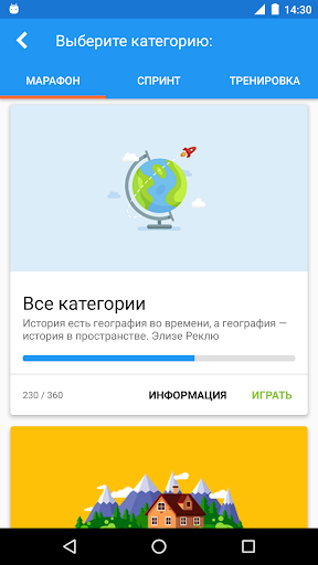 Викторина для тех, кто желает изучить географию. Играя, Вы сможете изучить географию или же подготовиться к экзамену, а также оценить свой уровень знаний в географии. Представленные в игре вопросы охватывают все темы и ключевые области географии. Вопросы распределены по уровням сложности. Базовые уровни затрагивают ключевые области и аспекты географии, что позволит Вам стать настоящим знатоком географии. Углубленный же уровень предоставит Вам возможность почувствовать себя настоящим экспертом в области географии, так как от Вас потребуется глубокое знание изучаемого предмета. В игре представлено три режима: аркада, марафон и спринт. В режиме аркада Вы должны пройти все уровни. В режиме марафон Ваша задача ответить на все вопросы категории. Тренировка: тренировать задания без жизней. - Более тысячи заданий - Вопросы включают все темы географии - Возможность выбора интересующей Вас темы Изучайте географию играя!