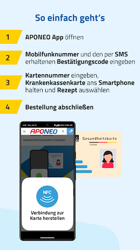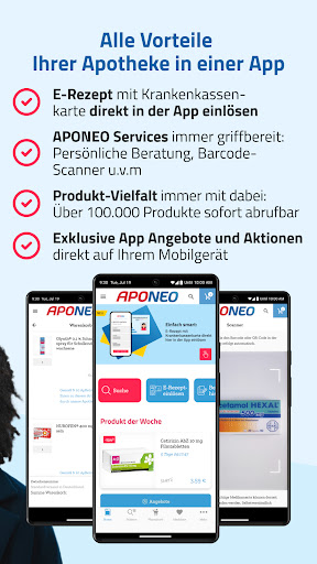 Mit der APONEO App haben Sie Ihre Apotheke und Drogerie immer dabei. Bestellen Sie einfach, schnell und sicher Medikamente, Beauty- und Pflegeprodukte und viele weitere Artikel zu günstigen Preisen. E-Rezept auf Ihrer Krankenkassenkarte: Ab sofort über die APONEO App digital einlösen. Alles, was Sie brauchen ist Ihre Krankenkassenkarte mit Ihrem E-Rezept und die APONEO App! So funktioniert\s: • APONEO App öffnen. • Ihre Krankenkassenkarte an das Smartphone halten. • Schon wird alles versandkostenfrei nach Hause geliefert. Nutzen Sie die schnelle, digitale Lösung! Egal ob Medikamente oder Pflegeprodukte – APONEO sorgt dafür, dass Ihr E-Rezept problemlos eingelöst wird und Sie Ihre Produkte schnell und bequem nach Hause geliefert bekommen. Tauchen Sie ein in unser vielfältiges Sortiment mit über 100.000 Produkten und lassen Sie sich Ihre Bestellung bequem und schnell nach Hause liefern. Ihre Vorteile auf einen Blick: • Entdecken Sie eine riesige Auswahl an frei verkäuflichen Arzneimitteln, • Beauty- und Pflegeprodukten und vielen weiteren Artikeln. • Lösen Sie Ihr E-Rezept schnell, sicher und bequem ein. • Profitieren Sie regelmäßig von attraktiven Rabatten und exklusiven Gutscheinaktionen. • Loggen Sie sich sicher und geschützt ein. • APONEO Services immer griffbereit: kostenlose persönliche Beratung, kostenloser Wechselwirkungscheck, Barcode-Scanner u.v.m. Wir bieten Ihnen ein großes Sortiment in den Bereichen: • Arzneimittel & Medikamente • Baby & Familie • Beauty & Pflege • Ernährung, Sport & Abnehmen • Homöopathie & Naturprodukte • Pflege & Sanitätshaus • Tierapotheke & Tierbedarf • Und vieles Mehr Entdecken Sie jetzt die APONEO-App und profitieren Sie von exklusiven App-Vorteilen.