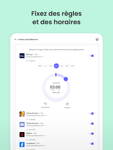 L’appli Qustodio pour enfants fonctionne en association avec Qustodio Contrôle Parental, réservée à l’appareil d’un parent. Veuillez télécharger cette application uniquement sur l’appareil d’un enfant ou d’un adolescent. Téléchargez Qustodio Contrôle Parental sur votre appareil (généralement un téléphone ou un ordinateur portable). Ensuite, installez l’appli Qustodio pour enfants sur le ou les appareils à surveiller. Ensemble, ces applications permettent de gérer le temps d’écran quotidien sur les téléphones, tablettes et ordinateurs équipés d’Android, d’iOS ou d’un autre grand système d’exploitation. Appli Qustodio pour enfants • Gratuite • À installer sur tout appareil que vous souhaitez surveiller • Fonctionne en association avec l’application Qustodio Contrôle Parental Version gratuite de Qustodio (1 appareil surveillé) ✓ Établissez et gérez des limites d’utilisation quotidiennes ✓ Bloquez des catégories de sites Web (jeux vidéo ou d’argent et contenus pornographiques ou indésirables) ✓ Surveillez sites Web, recherches et applications ✓ Configurez la recherche sécurisée ✓ Bloquez les navigateurs non pris en charge ✓ Obtenez des rapports avancés (historique de 7 jours) ✓ Recevez des alertes Pour bloquer des applications, utiliser la géolocalisation, recevoir des rapports encore plus complets et établir des créneaux d’accès aux appareils, passez à Qustodio Premium. Version Premium de Qustodio (5, 10 or 15 appareils surveillés) Profitez des fonctionnalités gratuites et plus encore : ✓ Nouvelle Surveillance de YouTube ✓ Nouveau Localisateur familial avec traceur GPS (pour trouver aussi un appareil) ✓ Bloqueur d’applications (spécifiques ou par catégorie) ✓ Rapports avancés (historique de 30 jours) ✓ Bouton SOS pour alerter des membres de la famille ✓ Assistance prioritaire ✓ Accès prioritaire aux nouvelles fonctionnalités ✓ Nombre accru d’appareils associés Protégez, bloquez et surveillez grâce à Qustodio : 1 – Téléchargez Qustodio Contrôle Parental sur votre appareil (généralement un téléphone ou un ordinateur portable), puis créez un compte ou connectez-vous. 2 – Installez l’appli Qustodio pour enfants sur l’appareil à surveiller. 3 – Connectez-vous et suivez les instructions de configuration. 4 – Les sites Web inappropriés seront alors bloqués automatiquement. 5 – Pour surveiller l’activité de votre enfant, utilisez Qustodio Contrôle Parental sur votre appareil ou connectez-vous à votre tableau de bord Qustodio (https://family.qustodio.com). Notre FAQ : • L’application Qustodio est-elle compatible avec Android 8 (Oreo) ? Oui. • L’application Qustodio fonctionne-t-elle sur des plateformes autres qu’Android ? Oui, Qustodio peut protéger des appareils Windows, macOS, iOS, Kindle et Android. • Quelles langues proposez-vous ? Qustodio est disponible en français, anglais, espagnol, italien, portugais, allemand, japonais et chinois. Besoin d’aide ? Contactez-nous sur https://www.qustodio.com/help ou à support@qustodio.com. Remarques : Cette application nécessite les droits d’administrateur de l’appareil pour éviter qu’un utilisateur désinstalle l’application Qustodio pour enfants à votre insu. Cette application utilise des services d’accessibilité pour garantir une expérience optimale aux utilisateurs avec un handicap mental. Cette application utilise le service VPN pour filtrer le contenu Web inapproprié. Remarques de dépannage : Propriétaires d’appareils Huawei : le mode d’économie d’énergie doit être désactivé pour Qustodio.