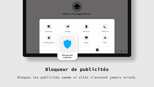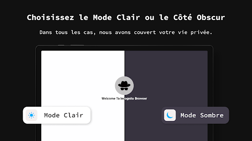 Naviguez sur Internet de manière anonyme et protégez votre vie privée. Incognito Browser est un navigateur web rapide, privé et sûr pour Android avec un solide bloqueur de publicités, des téléchargements rapides, un mode sombre et des fonctionnalités de confidentialité avancées. Maintenant avec le support de Web3 & IPFS ! Pourquoi choisir Incognito Browser? ✓ Confidentialité Absolue Le mode incognito automatique assure que toutes les données - y compris l\historique, les cookies et les sessions - sont immédiatement effacées lorsque vous quittez l\application. Aucune empreinte digitale laissée derrière. ✓ Navigation Privée Idéal pour des tâches sensibles comme consulter des sites de rencontres ou utiliser les réseaux sociaux discrètement. ✓ Sans Historique Votre appareil reste propre; pas d\historique de navigation ni de cache. ✓ Sans Traceurs Pas de traceurs sournois de première ou de troisième partie. Gardez votre navigation vraiment anonyme. CARACTÉRISTIQUES Bloqueur de Publicités Robuste Consultez votre contenu préféré sans être interrompu par les publicités. Support de Web3 & IPFS Incognito Browser prend maintenant en charge les adresses IPFS, .eth & .crypto de Web3. Mode Sombre Navigation nocturne sans fatigue visuelle - Incognito Browser offre une véritable interface sombre pour naviguer sur Internet la nuit. Téléchargements Rapides Téléchargez des fichiers à une vitesse fulgurante tout en restant anonyme. Moteurs de Recherche Multiples Choisissez quel moteur de recherche utiliser. Incognito Browser supporte plusieurs moteurs de recherche, dont Google, DuckDuckGo & Bing. ️ Dissimulation d\Agent Cachez l\identité de votre navigateur et de votre appareil. Accédez aux versions de sites de bureau sur votre appareil mobile. ✓ Navigation par Onglets Passez rapidement entre plusieurs pages web ouvertes lors d\une seule session de navigation. ✓ Interface Épurée Pas de superflus, pas de barres supplémentaires - Incognito Browser a un design minimaliste qui maximise votre espace de visualisation. ✓ Support de Plusieurs Langues Incognito Browser supporte 13 langues différentes, y compris l\anglais, l\espagnol et le portugais. ✓ Paramètres Personnalisables Personnalisez votre expérience de navigation avec nos paramètres avancés. Définissez vos préférences pour les images, JavaScript, cookies et plus encore. Vivez la confidentialité en ligne au niveau supérieur. Téléchargez la meilleure application de navigateur privé pour Android!