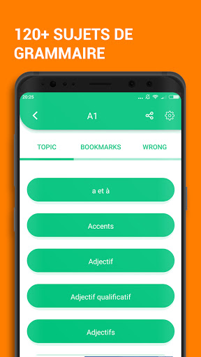 Attention! Vous avez trouvé l’une des meilleures applications d’apprentissage du français. Avec cette application, vous pouvez apprendre le français gratuitement avec des milliers de tests et de questions. Qu\est-ce qui distingue cette application d\apprentissage du français des autres? - Cette app est 100% gratuite. Vous pouvez vous entraîner avec 10000 questions de grammaire française sans rien payer. - Toutes les questions sont conçues avec des explications détaillées. En plus, nous fournissons également un support personnel. - De nombreux leçons et exercices de grammaire française aux niveaux A1, A2, B1. Utiliser cette app vous apporte une bonne préparation pour votre examen de français. - 100+ sujets de grammaire sont impliqués dans cette application d’apprentissage de grammaire française. Ces sujets sont structurés de manière claire et systématique. Cela vous aidera à améliorer votre grammaire française, votre compétence d’écriture et encore de lecture. - Notre application d’apprentissage du français fonctionne parfaitement même quand vous ne vous connectez pas à l’Internet. Apprendre le français hors ligne est aujourd’hui vraiment facile. - Bonne app pour améliorer votre vocabulaire et pratiquer le grammaire. Elle est comme un entraîneur de verbes et de vocabulaire français pour vous tous. - Avec un design minimaliste et une interface utilisateur claire, cette app est très conviviale. De plus, les leçons de grammaire française rapides de cette application vous aident à apprendre les règles de grammaire française rapidement. Cette application de grammaire française est parfaite pour les niveaux débutant, intermédiaire et même intermédiaire supérieur. Elle comprend à la fois les leçons de grammaire française avancées et de base. Particulièrement, elle est un bon devoir de français lorsque vous voulez pratiquer et améliorer vos compétences en grammaire française. Essayez d’utiliser cette app et vous l’aimerez certainement! Sujets de grammaire: - a et à - Accents - Adjectif - Adjectif qualificatif - Adjectifs démonstratifs - Adverbes - Le verbe aller - Le verbe avoir - Le verbe boire - Le verbe devoir - Le verbe être - Le verbe faire - Le verbe pouvoir - Le verbe vouloir - Le vocabulaire