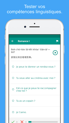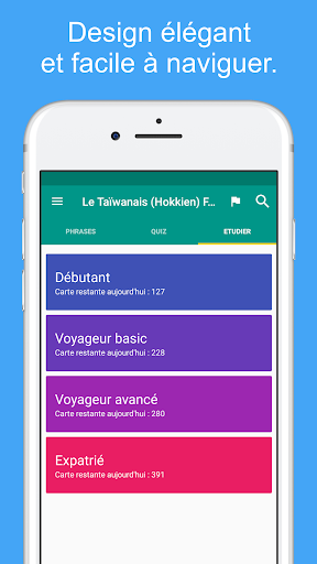 ★★★ Apprenez la langue Hokkien en visitant Taïwan ★★★ Le guide de conversation hokkien est une app de langue Hokkien gratuite qui vous apprend le Hokkien simplement et rapidement Tous les mots et phrases hokkien vous sont présentés en phonétique et en écriture Hokkien. Ils sont enregistré par une femme orginaire de Taïwan. Sauvergardez vos phrases et mots préférés pour les retrouver facilement. Apprenez le vocabulaire en utilisant la technique de répétition espacée Testez vos connaissances avec des quiz divertissants et comparez vos scores. ★★★ Survivre en voyage en Taïwan ★★★ Utilisez le guide de conversation hokkien pour survivre en Taïwan Par exemple, laisser l\application parler au chauffeur de taxi en hokkien pour leur montrer où vous voulez aller Cherchez toutes les phrases et mots pour accéder rapidement à ce dont vous avez besoin ★★★ Caractéristiques principales ★★★ ✓ 400+ phrases et mots hokkien gratuits ✓ Enregistrés par une fille originaire de Taïwan ✓ Audio de haute qualité ✓ Technique d\apprentissage de répétition espacée ✓ Quiz hokkien pour revoir vos compétences ✓ Suivez vos progrès d\apprentissage ✓ Sauvegardez vos phrases et mots préférés ✓ Fonction de recherche rapide ✓ Vue détaillée pour apprendre les phrases mot à mot ✓ Copiez les phrases dans le presse papier (avec un click long sur la phrase) ✓ Jouez le son plus doucement ✓ Ajustez le quiz et les cartes flash pour: Hokkien -> Français, Français -> Hokkien ★★★ Catégories ★★★ 11 Catégories d\apprentissage gratuite. Apprennez avec 400+ phrases Hokkien et mots Hokkien dans les catégories suivantes : Conversation de base hokkien, Salutations hokkien, Phrases directions, Mots directions, Hébergement, Manger dehors en Taïwan, Shopping, Tourisme en Taïwan, Urgence, Date et heure, Chiffres 22 Catégories dans la version Pro. Apprenez tous les 1000+ phrases et mots Hokkien dans la version Pro avec les catégories supplémentaires suivantes : Conversation niveau avancé, Passer la frontière, La banque * Conversations d\affaires, Relations romantiques I, Relations romantiques II, Téléphone & Internet, Lieux, Loisirs, Nourriture, Fruits, Légumes, Corps humain, Sentiments, Animaux, Professions, Questions, Santé, Couleurs, Pays, Famille, Le bureau de Poste ★★★ Vos commentaires nous intéressent ★★★ Si vous aimez cette application, merci de prendre un instant pour nous noter ou donner votre avis. Si vous avez des suggestions, avis ou conseils je serai ravie que vous me les fassiez parvenir à support@simyasolutions.com. ★★★ A propos ★★★ Site Internet : www.simplylearnlanguages.com/hokkien Contactez-nous : facebook.com/simplylearnlanguages Amusez-vous bien à apprendre le hokkien!