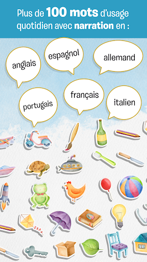 La bonne prononciation ! Ici les enfants apprendront de nouveaux mots amusants en associant les jolies illustrations faites à l\aquarelle à leur bonnes prononciations (anglais, espagnol, portugais, français, italien et allemand). On peut changer la langue quand on veut. Chaque illustration est liée à sa narration et à la phonétique de l\alphabet, traduits en portugais, anglais, espagnol, français, italien et allemand. Les trois façons d\y apprendre : Flashcards : Des fichiers audio avec la prononciation des mots illustrés dans six langues (anglais, espagnol, portugais, français, italien et allemand). Faites glisser la lettre : Des fichiers audio et des lettres pour construire le mot correspondant. L\enfant doit remettre les lettres dans la bonne disposition. Jeu de mémoire : le classique et amusant jeu de mémoire pour s\entraîner et bien fixer les nouveaux mots appris. Features : Vous pouvez jouer gratuitement avec 30 mots du pack Objets dans tous les modes de jeu. Pour enrichir encore plus votre vocabulaire, nous vous offrons 4 packs additionnels (Les animaux, Les transports, Les fruits et les légumes, Les vêtements), avec 21 mots chaque, disponibles pour achat. Le Nom des Choses est fait avec amour et pensé pour l\apprentissage des vos petits. Il n\y a pas de limites, il n\y a pas de pression : ici, chaque enfant prend son temps pour apprendre. Best kids app - Mi primer festival / Peru