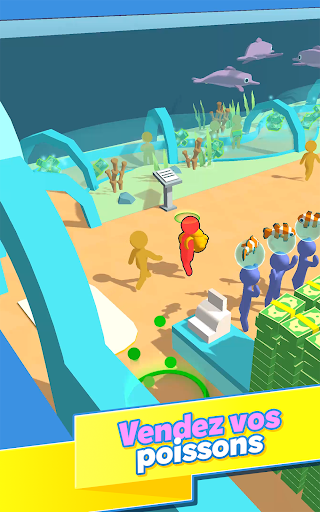 Bienvenue dans Aquarium Land, l\un des meilleurs jeux de pêche au monde ! Nagez et pêchez dans la mer pour attraper des poissons tels que des carpes koï, des étoiles de mer ou des poissons rouges, puis placez-les dans votre aquarium pour agrandir votre magasin, attirer des clients et devenir le plus grand propriétaire d\animaux aquatiques dans ce jeu maritime incrémental ! Faites progresser votre parc aquatique et découvrez de nouvelles espèces, puis pêchez-les, vous trouverez toujours un acheteur ! Investissez dans votre parc aquatique et explorez la mer comme un véritable expert des animaux marins ! Plus vous accumulez d\argent, plus vous obtenez d\améliorations ! Découvrez un jeu amusant et addictif, c\est comme gérer un magasin rempli de poissons et d\animaux marins, tels que des carpes koï, des étoiles de mer et des poissons rouges ! Partez à la pêche et débloquez de nouveaux aquariums dans votre minuscule pisciculture ! Aucun jeu de pêche n\a jamais été aussi amusant et addictif, surtout parmi les jeux qui proposent des animaux marins ! Vos clients voudront des poissons toujours plus beaux, comme des carpes koï, des étoiles de mer ou des poissons rouges ! À vous d\aller en pêcher sur la côte et de remplir les aquariums de votre pisciculture ! Prenez la tête d\un parc aquatique et agissez comme un véritable propriétaire de zoo en achetant de nouveaux aquariums pour vos animaux marins. Devenez le plus grand propriétaire de poissons et le maître des parcs aquatiques ! Jouez à Aquarium Land dès maintenant !