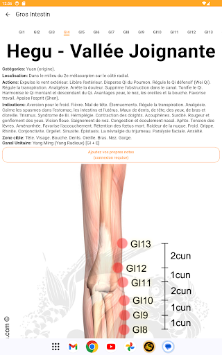 ★ 30 jours pour tester, si vous ne l\aimez pas, nous vous rembourserons. ★ Description complète de 390 points d\acuponcture illustrés (tous les points standard et 29 points bonus). ★ Chaque point inclut : - Le nom chinois original - La signification du nom - La catégorie du point - Sa localisation avec des images haute qualité - Les actions des points - Les indications des points - La zone d\effet du point - Le canal ★ Une option vous permet d\ajouter vos propres notes et informations sur chaque point. Ces données sont synchronisées avec vos autres appareils, et incluses dans les suggestions de recherche. ★ Recherche de points selon les signes, symptômes et motifs. ★ Achetez une fois et utilisez-le sur tous vos téléphones et tablettes Android. Assistant Acuponcture est bien plus qu\un atlas de points d\acuponcture, il possède également une recherche rapide qui vous permet de chercher toutes les informations comme les signes, symptômes, actions souhaitées, et vous suggère immédiatement les points les plus adéquats pour le traitement. Cette application est toute nouvelle. D\autres options seront bientôt disponibles ! Pour tout commentaire ou suggestion, n\hésitez pas à nous contacter :https://tcmpoints.com A PROPOS DES AUTORISATIONS DE L\APPLI : Internet : Nous avons besoin d\un accès à Internet pour sauvegarder et synchroniser vos notes (si activé). Accès aux données personnelles: Requis par Google Drive. Nous n\accédons à aucune de vos informations personnelles.