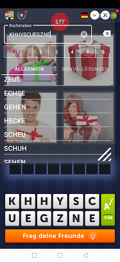 ** Nouveau design ** Solutions toujours à jour du jeu \4 Pics 1 Word\ de von LOTUM GmbH Avec le mode Pop-Out Shwebe, vous pouvez toujours voir les solutions ou les réponses sous la forme d\une petite fenêtre contextuelle au premier plan. Cela évite de basculer constamment entre les applications et les solutions La fenêtre se réduit automatiquement si vous le souhaitez. Veuillez utiliser cette application d\aide le moins possible :) L\application est conçue comme une aide et peut ne pas inclure toutes les solutions * Instructions: https://youtu.be/TUZXp9sD1mc Pour critiques et suggestions : agiasoft.hamburg@gmail.com