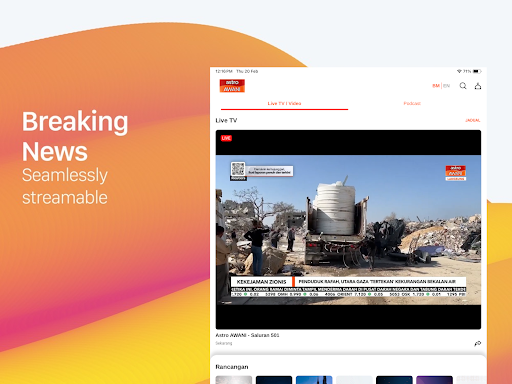 IKUTI Astro AWANI - Saluran Berita Paling Dipercayai di Malaysia*. Muat turun aplikasi Astro AWANI untuk laporan perkembangan berita dalam dan luar negara di mana sahaja anda berada. Astro AWANI mempersembahkan berita terkini dan rancangan bermaklumat termasuk hal ehwal semasa, gaya hidup, dokumentari, rancangan temu bual serta majalah tempatan dan antarabangsa. Wartawan dan sidang pengarang berpengalaman Astro AWANI mengupas dan membincangkan isu utama harian dan mingguan secara komprehensif merangkumi tajuk-tajuk utama dari pelbagai skop berita -- Nasional, Dunia, Niaga, Sukan, Hiburan, Teknologi, Pelancongan, Gaya Hidup dan banyak lagi. Pelbagai program berita dan rencana terunggul di Malaysia boleh anda tontoni di sini, antaranya AWANI 7:45, Agenda AWANI, ‘Consider This’, ‘AWANI Review’ dan lebih dari 20 program yang lain. CIRI-CIRI UTAMA: •LIVE TV: Astro AWANI bersiaran 24 jam secara langsung – tontoni berita utama dan terkini setiap masa di mana sahaja anda berada. • NOTIFIKASI BERITA TERKINI: Langgan Notifikasi untuk pastikan anda tidak ketinggalan dengan berita penting hari ini. •TRENDING: Ikuti pilihan berita paling popular yang menjadi topik hangat bualan terkini • WAKTU SOLAT: Notifikasi waktu-waktu Solat sepanjang hari dan arah kiblat •PODCAST: Terlepas? dengar semuanya untuk HIT topik dan berita terkini melalui audio. •VIDEO Unlimited: Saksikan dan alami puluhan ribu pilihan VIDEO ON DEMAND secara percuma tanpa henti. • Butang ‘SAVE’ & ‘SHARE’: Simpan video/berita kegemaran anda dan kongsi bersama rakan-rakan. Sentiasa berada di hadapan dengan fakta dan data yang terbaharu di aplikasi Astro AWANI. Muat turun secara percuma hari ini! *Sumber: Reuters’ Digital News Report 2018, 2019