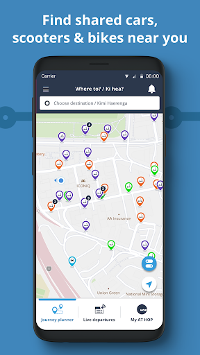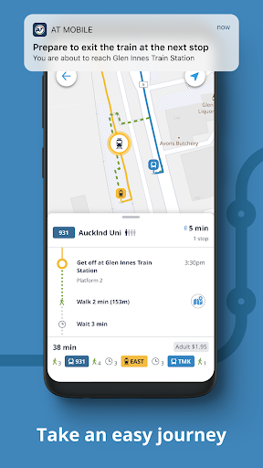 AT Mobile makes it easy to move around Auckland. It helps you plan and track journeys across AT Metro bus, train and ferry services, or go by bike or on foot. Whether you are a frequent commuter, an occasional traveller or a new to Auckland explorer, join over 250,000 other users and take an easy journey around Auckland Find your best route - Use the Journey Planner to find out how to get to your destination, and save your regular trips. Maybe you want to get there by bike or on foot? Journey Planner will show you walking and cycling journey options too. Real time departures - Save time by knowing when you need to be at your stop or station, and even track the live location of your service. Save your favourite stops and stations for quick access when you\re out and about. Enjoy an easy journey - Going somewhere new, or just want to relax on your journey? We\ll let you know when it’s time to board or to get off. Shared scooters and bikes - Check live location of scooters or bikes near you and unlock in the provider app. Manage your AT HOP balance - Don’t wait till you get home, check your balance on the go, find nearby top-up locations, and easily top-up. Disruption alerts and info - Want to be kept up to date when services change? We’ll let you know when your frequently used routes or stops are disrupted, based on your travel using registered AT HOP cards. Or you can subscribe to the specific routes you use, at the time of day you usually travel. Train Line Status - Check how your train line is running before you head to the station, for any disruptions or delays. We\re always working to improve the app to make it easier for you to get around Auckland. Please send us feedback in your reviews or via the \Contact Us\ area in the menu - we\d love to hear from you.