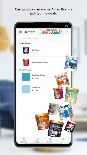 Avian Brands adalah produsen cat tanah air yang telah hadir untuk mewarnai Indonesia salama 42 tahun. Rangkaian produk cat terus kami hadirkan untuk memenuhi kebutuhan Anda dan tersedia di lebih dari 50.000 toko yang tersebar diseluruh Indonesia. Untuk memudahkan kamu menemukan produk dan toko, Aplikasi Avian Brands menjadi solusi Cara Cepat Cari Cat! Bukan hanya itu, Anda juga dapat menghitung jumlah cat yang diperlukan, serta memvisualisasikan warna pada ruangan langsung di aplikasi ini. Dapatkan juga artikel terbaru setiap minggunya sebagai referensi dekorasi rumah Anda. Download Aplikasi Avian Brands sekarang! Cari tahu lebih banyak tentang Avian Brands di semua akun media sosial kami : INSTAGRAM = @avianbrands FACEBOOK = Avian Brands YOUTUBE = Avian Brands LINKED IN = Avian Brands Android APP SCREENSHOTS (Google requires 2 screenshots for each supported device, up to 8. Specs: JPEG or 24 bit PNGD Min Length for any side - 320 px Max Length for any side - 3840 px) iOS APP SCREENSHOTS (The size of the screenshots vary from device to device. For Ex: For iPhone 6 the size is 750 X 1334, for iPhone 4 & 5 is 640 X 1136 and for iPad its 1536 x 2048. Use JPEG or 24 Bit PNG Format.)