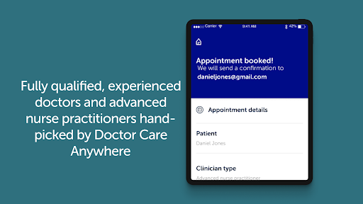 AXA Doctor at Hand is a 24/7 service, available wherever and whenever you need it. From a choice of appointments with GP’s or Advanced Clinical Practitioners for advice, prescriptions, tests or eligible referrals, AXA Doctor at Hand takes care of things seamlessly. Anytime appointments With AXA Doctor at Hand, appointments are available 24 hours a day, seven days a week, 365 days a year. You can see GP’s and Advanced Clinical Practitioners by video or phone. Advanced Clinical Practitioner appointments are available from 8am – 10pm* There’s no need to fit in with fixed opening hours or be left hanging on the phone to make an appointment or to get the support you need. Hand-picked network of healthcare professionals Appointments are with qualified doctors and advanced clinical practitioners; experienced healthcare professionals handpicked by Doctor Care Anywhere. You can even choose whether you see a male or female clinician.All our clinicians are UK-registered with either the General Medical Council (GMC) or Nursing and Midwifery Council ( NMC). They are also specially trained in virtual consultation skills, ensuring that you receive the highest quality of care during your consultation. See a clinician from anywhere Booking appointments through the app couldn’t be easier. AXA Doctor at Hand appointments are usually available within a few hours, and you can join from anywhere in the world – at home or when you’re away. Medical records at a touch You will have a copy of your appointment notes uploaded directly to your patient record, so you’ve got a reminder of the conversation you had with the clinician. Your full medical notes can be sent to your NHS GP to make sure that everyone’s in the picture. Doctor-patient confidentiality is paramount. Your notes will be stored securely in your patient record. When asked for an activation code, activate using your AXA Health membership number if you have one (found on your AXA Health membership documentation) or, if you don’t have an AXA Health membership number, use the activation code emailed to you by Doctor Care Anywhere. To view all the features of AXA Doctor at Hand and for more information please visit www.doctorcareanywhere.com/axa Full Terms and Conditions can be found at www.doctorcareanywhere.com/terms-conditions-axa