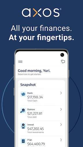 Your money, your way. Axos delivers smart personal and business finance on the go. Bank, borrow, invest, and plan on your terms. Manage accounts. Track savings. Access and move money with ACH direct deposit, mobile deposit, and money transfer. Plus, pay bills and monitor your credit score. It’s the way financial services should be. MOVE MONEY & ACCESS FUNDS It’s your money – use it. Add money and send it where it needs to go. • Transfer money to accounts, friends, and others • Mobile check deposit • Early direct deposit • One-time & recurring bill pay • Wire transfers MANAGE CHECKING AND SAVINGS ACCOUNTS Make your money work. Open a digital bank account. Manage debit and ATM cards. Get account balance and other alerts. • Accounts for all ages, from teens to adults and seniors • Rewards and CashBack Checking • High Yield Savings • High Yield Money Market • Certificates of Deposit (CDs) BORROW MONEY & MANAGE LOANS Apply for a loan, track details, and pay loans. • Mortgages for home purchase and refinance • Auto loans to buy or refinance vehicles • Personal loans for large expenses, home improvements, debt consolidation, and more • Set up & edit scheduled payments • Enroll in payment alerts DIY & HANDS-OFF INVESTING Track and manage investments. Research and buy stocks & ETFs. Place a trade. • Self-Directed Trading • Managed Portfolios • Axos Elite Investing • Individual retirement accounts (IRAs): Traditional, Roth, and Rollover • Margin & options trading CREDIT SCORE MONITORING Watch your credit and learn how it impacts finances. • Free credit score • Credit score change alerts • Credit score history PERSONAL FINANCE MANAGER Connect bank accounts to track money and gain insights to help master finances. • Account aggregator • Spending tracker • Saving & investing trends • Debt tracker 2024 Axos Financial, Inc., All Rights Reserved. 2024 Axos Bank, All Rights Reserved. 2024 Axos Invest LLC. Member FINRA & SIPC. All Rights Reserved. 2024 Axos Invest, Inc. All Rights Reserved. Bank products and services are offered by Axos Bank. All deposit accounts through Axos Bank brands are FDIC insured through Axos Bank. All deposit accounts of the same ownership and/or vesting held at Axos Bank are combined and insured under the same FDIC Certificate 35546. All deposit accounts through Axos Bank brands are not separately insured by the FDIC from other deposit accounts held with the same ownership and/or vesting at Axos Bank. For more information read Axos Bank’s FDIC Notice. Advisory services are offered by Axos Invest, Inc., an investment adviser registered with the Securities and Exchange Commission (“SEC”). For information about our advisory services, please view our ADV Part 2A Brochure, free of charge. Brokerage services and securities products are offered by Axos Invest LLC, Member FINRA & SIPC. YOU MAY FIND MORE INFORMATION ABOUT OUR FIRM ON BROKERCHECK. PLEASE VISIT https://brokercheck.finra.org/firm/summary/172393 OR REVIEW OUR FORM CRS AT https://files.brokercheck.finra.org/crs_172393.pdf. All cash and securities held in Axos Invest client accounts are protected by SIPC up to $500,000, with a limit of $250,000 for cash. Read more information about SIPC on the SIPC webpage. Securities and other non-deposit investment products and services are not deposits, obligations of or guaranteed by Axos Bank, are not insured by the FDIC or any governmental agency, and are subject to investment risk including possible loss of the principal invested. Past performance of a security does not guarantee future results or success. $0 Stocks are limited to stocks listed on an exchange in the United States. Foreign exchange, stocks listed over the counter and large block transactions requiring special handling may include charges. Axos Invest LLC, Axos Invest, Inc., and Axos Bank are separate but affiliated companies. Axos Bank NMLS# 524995