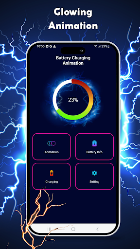 Battery fast Charging Animation is an animation app that breathes life into your phone while it powers up. Charging fast animation photo let you choose from stunning 3D animations. Say goodbye to boring charging screens! Watch your battery level rise with vibrant progress bars or anything you like with Battery Charging Animation! Battery fast Charging screen allows you to customize your experience further with your images, whether it\s your favorite photo or a cherished artwork. But it\s not just about the visuals. 3D charging animation informs you of essential battery details, showing you the charging percentage in real time. Battery Charging Animation lets you tackle those unexpected power outages with the handy Torch function. Charging screen app lets you switch between animations or turn them off completely, depending on your mood. Key features of Battery charging animation - Lively Charging Screen Animations - Multiple battery animation to Choose - Set Background charging animation photo - Real time Charging screen percentage - Torch for Emergencies - Charging animation Device info - Turn Animations On or Off Lively Charging Animations: Watch your battery fill with vibrant progress bars, calming nature scenes, or any animation which suits your style. Multiple Styles to Choose: From energetic to relaxing, charging animation match to your mood and personality. Set Your Background Image: Personalize your charging animation by setting your favorite photo or artwork as the background for the animation. Charging Percentage: Stay informed about your battery level with a clear and simple display of the charging percentage. Handy Torch for Emergencies: Be prepared for unexpected power outages with the torch function, accessible from the charging screen. Turn Animations On or Off: Choose to watch the animations while charging, or simply turn them on or off for a more minimalistic experience. Transform your charging experience by Download Battery Charging Animation.
