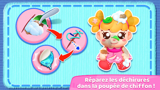 Aujourd\hui la boutique de réparation des jouets est très occupée et a besoin de vouz aidez: pour réparer la poupée de chiffon, pour changer quelques pièces dans la boîte musicale et pour peindre le petit cheval en bois. Téléchargez « Baby Panda Répare des Jouets » et commencez ! 1. De nombreux jouets différents : Il y a 20 types de jouets dans la boutique de réparation de jouets, tels qu\une boîte à musique, une machine à bulles, un xylophone, une lampe de table, et une guitare. Chaque pièce est tellement amusante ! 2. Compétences de réparation : Vous venez rencontrer différents types de problèmes avec les jouets : trous, peinture écaillée, pièces manquantes…. Comme un réparateur de jouets professionnel, vous travaillerez dur pour résoudre chacun d\eux ! 3. Gamme complète d\outils : Il y a une gamme complète d\outils ici que vous puvez utiliser, tels qu\un scanner automatique, une clé à molette, un tournevis, et une imprimante 3D. Vous venez avoir besoin de nombreux outils différents pour vos réparations de jouets ! 4. Modèle faites-le vous-même : Une fois que les jouets sont réparés, des nouveaux modèles doivent être créés. Vous pouvez choisir la couleur, le motif et la forme des jouets et vous amuser à les créer ! Ici, vous apprendrez : 1. Les compétences pour réparer les jouets tout seul ; 2. Comment persévérer à une tâche et accomplir une mission ; 3. La bonne qualité consistant à aider les autres. À propos de BabyBus ————— Chez BabyBus, nous nous consacrons à stimuler la créativité, l\imagination et la curiosité des enfants, et nous nous efforçons de concevoir nos produits à travers les yeux des enfants afin de les aider à explorer le monde par eux-mêmes. BabyBus propose une grande variété de produits, vidéos et autres contenus éducatifs à plus de 400 millions de fans âgés de 0 à 8 ans à travers le monde ! Nous avons publié plus de 200 applications éducatives pour enfants, plus de 2 500 épisodes de comptines et des animations de différents thèmes couvrant la santé, la langue, la société, la science, l\art et d\autres domaines. ————— E-mail pour nous contacter : ser@babybus.com Visitez notre site Web : http://www.babybus.com
