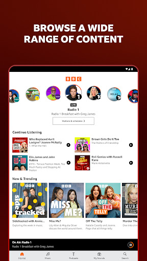 BBC Sounds is the new way to listen to BBC audio – your favourite programmes, podcasts, radio stations and music all in one place. Explore a wide variety of new podcasts, music mixes and live sets. Listen live to BBC radio stations. Catch up or listen again to your favourite BBC radio shows. Features include: ‐ Listen live to all BBC Radio stations ‐ Pause and rewind live radio, see past and future station schedules ‐ Download and listen to your shows on the go ‐ Continue listening from where you left off on any device ‐ Autoplay multiple episodes of series or podcasts or all your downloads (optional) ‐ Subscribe to BBC podcasts, mixes and programmes ‐ See the latest episodes from your favourite programmes and podcasts in one handy list ‐ Get personalised recommendations to discover new audio you’ll love ‐ Send music tracks you like to Apple Music and Spotify ‐ Browse by speech and music categories ‐ Sleep Timer BBC Sounds supports Google Talkback as an accessibility service. In order to use it, you will need to download the Android Accessibility Suite from the Google Play Store. When using the Android Auto enabled version of BBC Sounds, it is your responsibility to always follow safe driving practices (i.e. don’t be distracted and focus on the road at all times). Comply with all relevant laws, traffic regulations and road signs. To give you the best experience, this app tracks what you’ve listened to on BBC Sounds and how long you’ve listened to programmes for. It also tracks when you add something to Bookmarks or Subscriptions. By “Allow Personalisation”, you will get personalized recommendations. More information can be found here https://www.bbc.co.uk/usingthebbc/account/about-your-personalisation-settings/. In addition, the BBC Sounds app uses standard Android app permissions that are defined by the Google Android platform. The BBC uses cookies and similar technologies to understand how audiences interact with our services, content (such as podcasts and radio) and marketing messages. The categories of personal data processed by our data processors include the following: • IP address to determine which UK city/region you are in, or which country/continent you are in if outside of the UK • Activity data, such as time when you first used this app and programmes you listened to and interacted with • Your device information, such as device type and OS version For Android devices, the following personal data is also processed: • Which sites referred you to download and use this app • Personal data such as unique identifier, BBC Account data, type of campaign seen, social media channel used will be collected. We will aggregate it for reporting purposes You can “opt out” from our data processor’s tracking by filling the “Forget My Device” form in this link https://www.appsflyer.com/optout For more information about how and why we use information about you, please visit the BBC Sounds App Privacy Notice. https://www.bbc.co.uk/sounds/help/questions/about-bbc-sounds-and-our-policies/sounds-app-privacy-notice To read the BBC’s Privacy Policy go to http://www.bbc.co.uk/privacy/ If you install this app you accept the BBC Terms of Use at http://www.bbc.co.uk/terms/ The app is published by BBC Media AT (BBC Media Applications Technologies Limited) which is a wholly owned subsidiary of the BBC (British Broadcasting Corporation). Full details of BBC Media AT are available on the Companies House website at: http://data.companieshouse.gov.uk/doc/company/07100235 BBC 2021 The BBC is not responsible for the content of external sites. Read about our approach to external linking: http://www.bbc.co.uk/help/web/links/