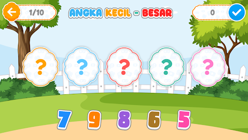 Bermain dan Belajar Mengenal Angka 1-20 Halo Ayah dan bunda :) Mari ajak anak-anak kita untuk bermain sambil belajar dengan game Belajar Angka, game ini berisi permainan yang memberikan sisi edukasi untuk belajar tentang mengenal angka Aplikasi Belajar Angka adalah game edukasi yang sangat cocok bagi anak-anak balita antara umur 4 - 6 tahun. Pada pemainan ini anak-anak akan belajar mengenal angka 1 sampai 20. Konsep pembelajaran pada aplikasi ini dirancang secara interaktif disertai permainan menarik dan suara yang menarik sehingga anak-anak tidak bosan saat bermain. Belajar mengenal angka merupakan hal dasar yang harus diajarkan pada anak-anak sejak dini sehingga setelah anak belajar dan paham mengenal huruf nantinya anak-anak tidak kesulitan untuk belajar berhitung. menu permainan yang terdapat dalam game adalah: - Tebak Bentuk Angka dengan Gambar - Mencocokan Angka dengan jumlah benda - Memasangkan Angka dengan Bilangan Angka (Teks) - Mengurutkan Angka dari Terkecil Hingga Terbesar - Mengurutkan Angka dari Terbesar Hingga Terkecil Semoga Bermanfaat :)