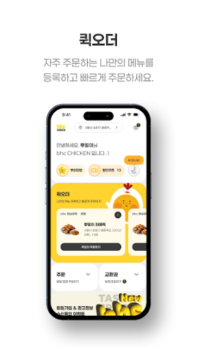 bhc 치킨 공식 앱에서만 누리는 혜택! 나만의 메뉴 퀵오더부터 간편한 배달·포장 주문과 NEW 멤버십 혜택을 모두 만나보세요. ■ bhc 멤버십 전용 혜택 bhc 치킨을 처음 만나는 신규 회원님부터 뿌린이·뿌렌즈·뿌리미엄까지! 더욱 풍성해진 멤버십 혜택은 오직 bhc 치킨 앱에서만 제공됩니다. ■ 간편하게 쓰는 교환권·선물하기 쉽고 빠르게 등록·사용할 수 있는 교환권부터 휴대폰 번호 하나로 이용할 수 있는 선물하기까지. 더욱 다양한 방법으로 bhc 치킨을 즐겨보세요! ■ 자주 주문하는 메뉴 퀵오더 터치 몇 번으로 내가 좋아하는 메뉴를 빠르게 주문하세요! 나만의 메뉴를 퀵오더로 등록하면 앱 메인화면에서 바로 주문하실 수 있어요. * 접근권한 안내 [필수적 접근권한] - 없음 [선택적 접근권한] - 위치 : 배달지 주소 설정 시 현재 위치 확인 - 주소록 : 선물하기 시 연락처 목록 불러오기 ※ 선택적 접근권한의 허용에는 동의하지 않아도 서비스의 이용이 가능합니다.
